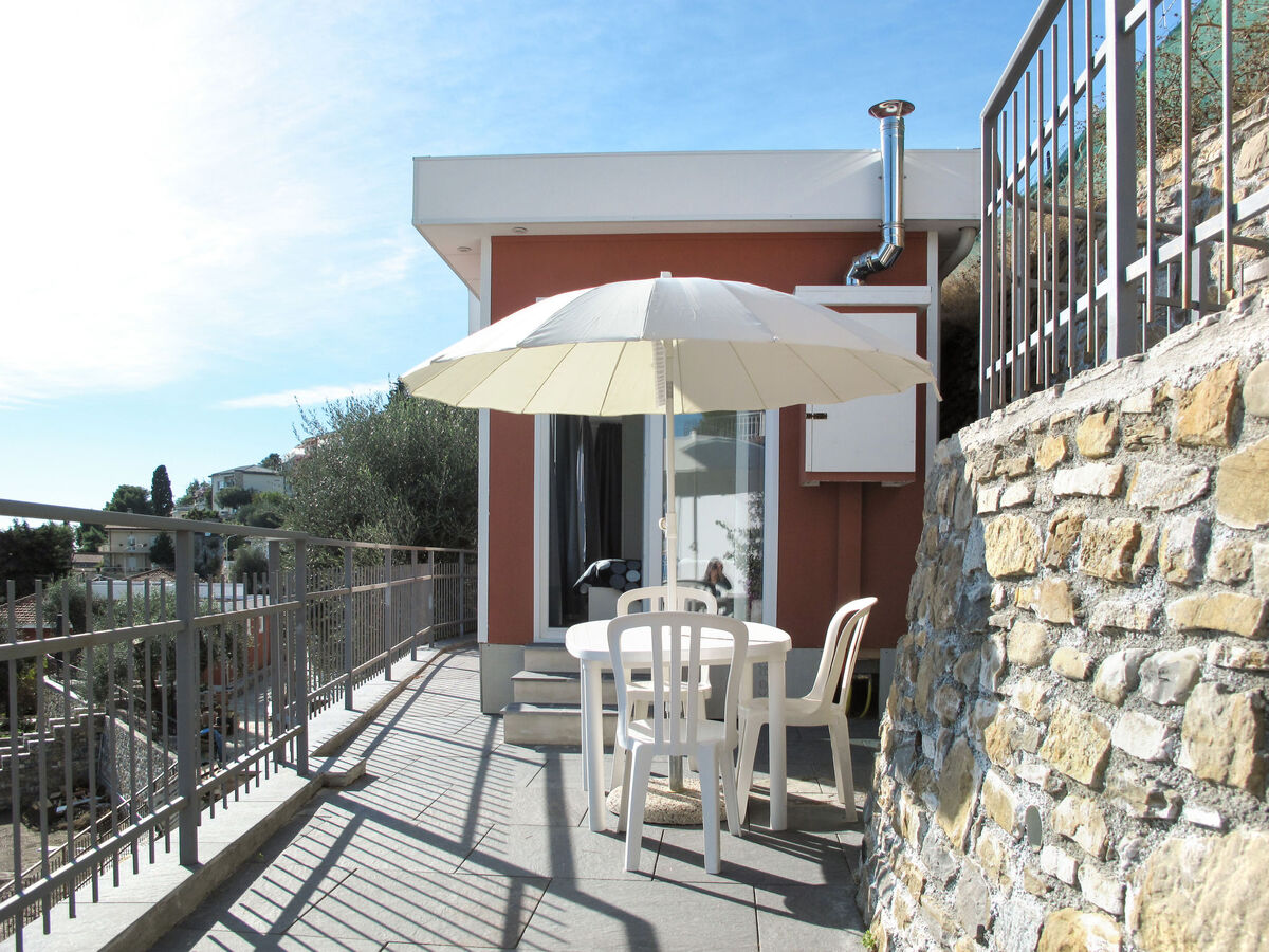 À 500 m du centre de San Lorenzo al Mare, en bordure de la localité, à 3.5 km du centre d'Imperia (Porto Maurizio), à 15 km du centre de San Remo, sur un versant, dans un quartier résidentiel, à 200 m de la mer, à 500 m de la plage, route à traverser.