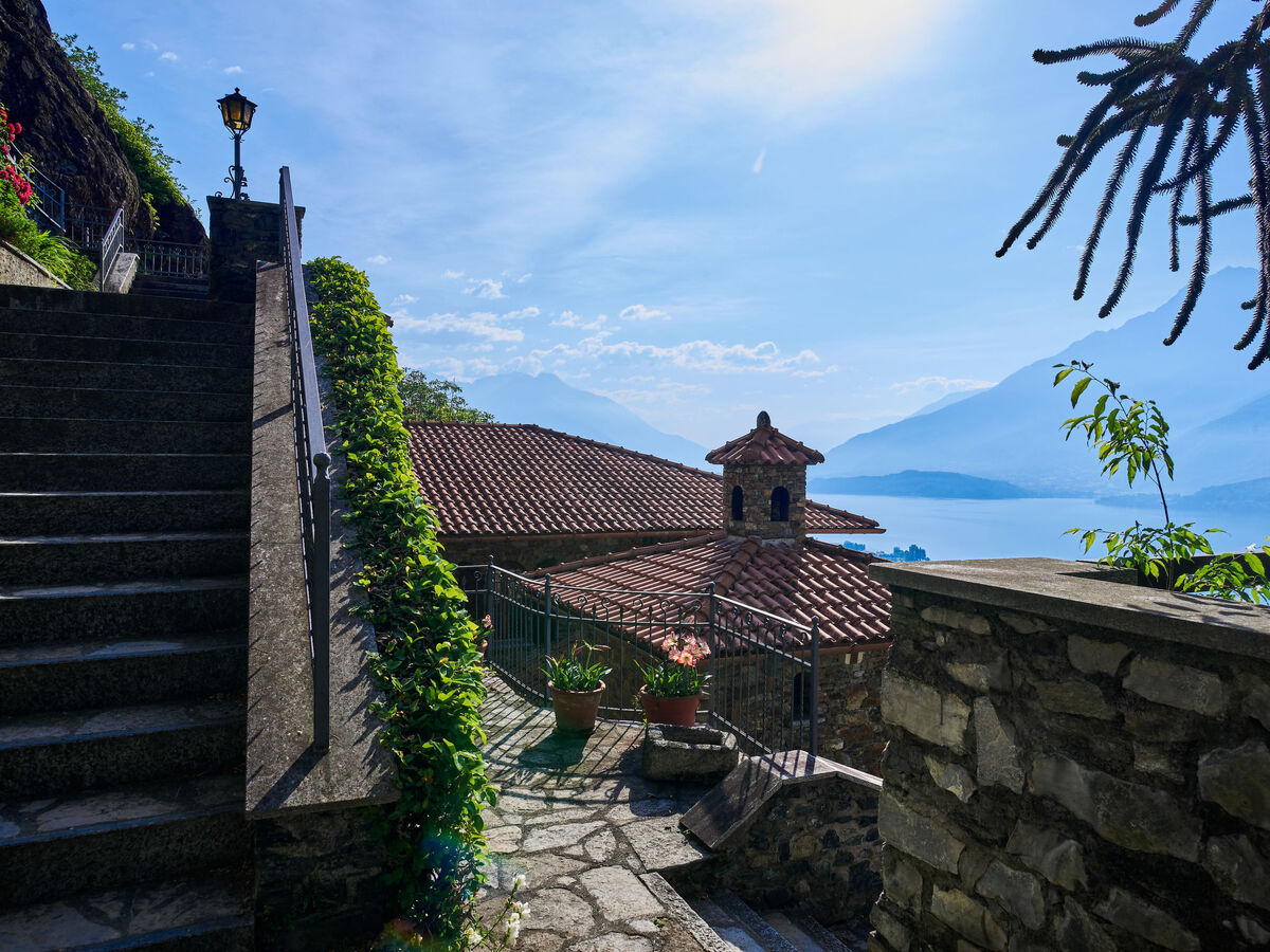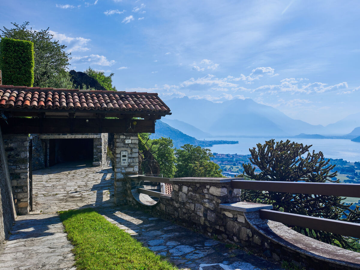 Dans le haut de la station de Dongo, à 2 km du centre de Dongo, à 48 km du centre de Como, à 40 km du centre de Lugano, situation isolée sur un versant, à 2 km du lac.