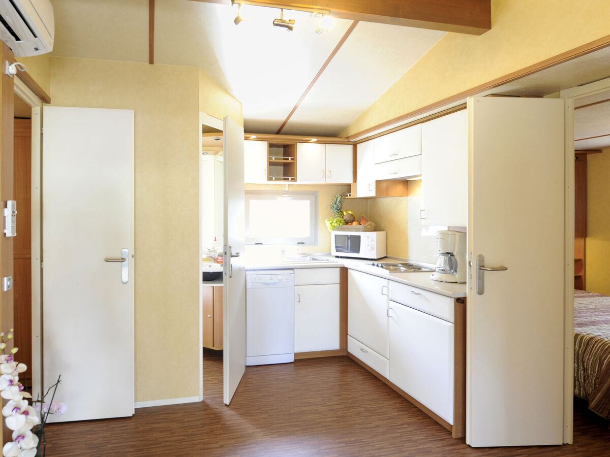 Cuisine (3 plaques de cuisson, lave-vaisselle, bouilloire électrique, micro-ondes, cafetière électrique).