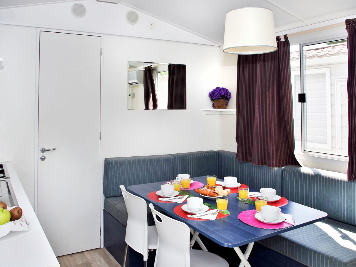 Aménagement fonctionnel: séjour/chambre à coucher avec 1 couchage, table pour les repas, chauffage électrique et air-conditionné.
