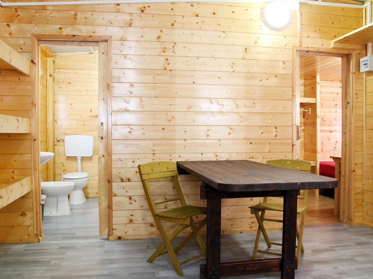 Aménagement fonctionnel et avec beaucoup de bois: salle à manger avec TV (satellite), air-conditionné et chauffage à air chaud.
