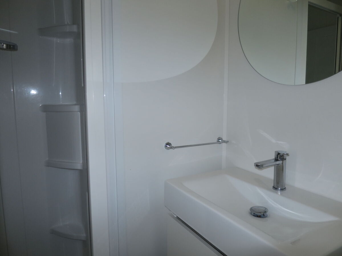 1 chambre avec 1 lit double (160 cm, longueur 200 cm), douche/WC.