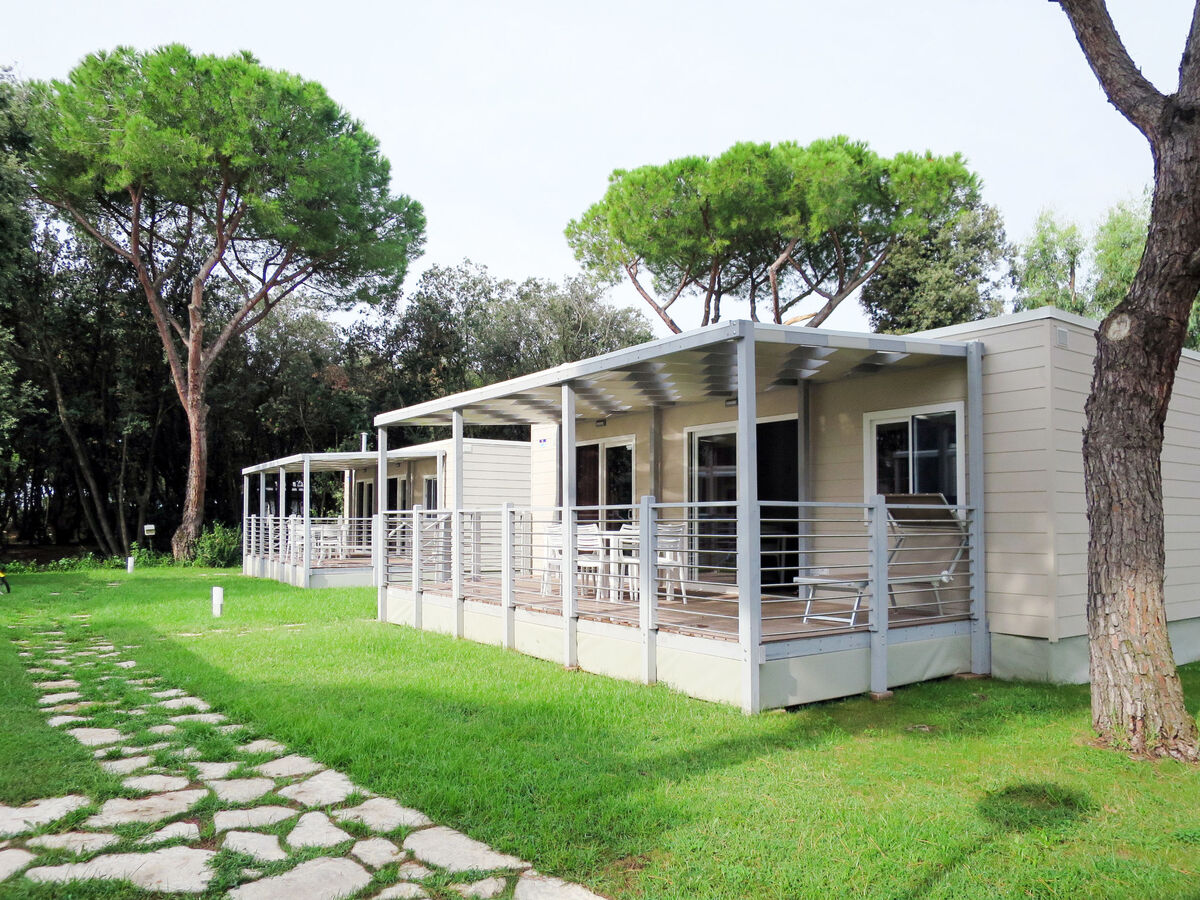 Baia Domizia: Beau, grand complexe de vacances "Camping Village Baia Domizia", environné par les arbres et prés.