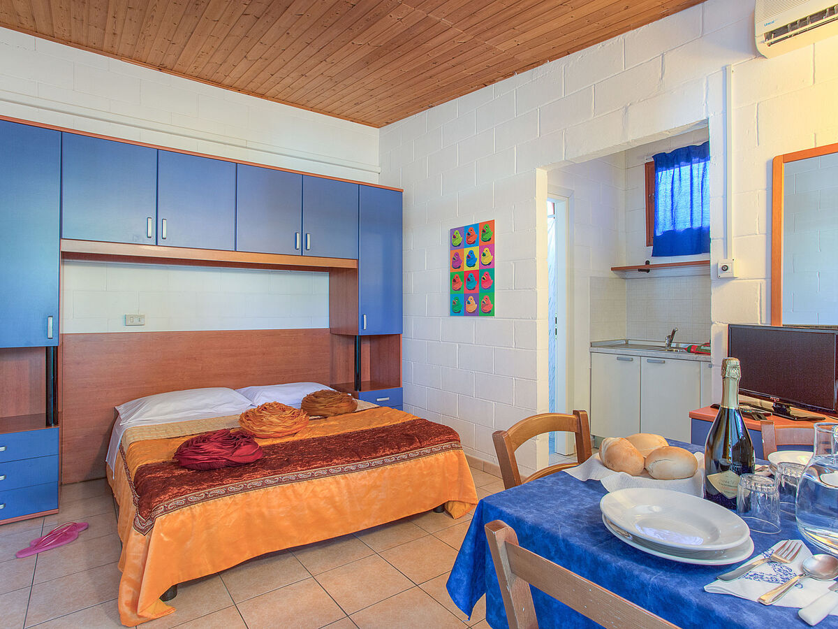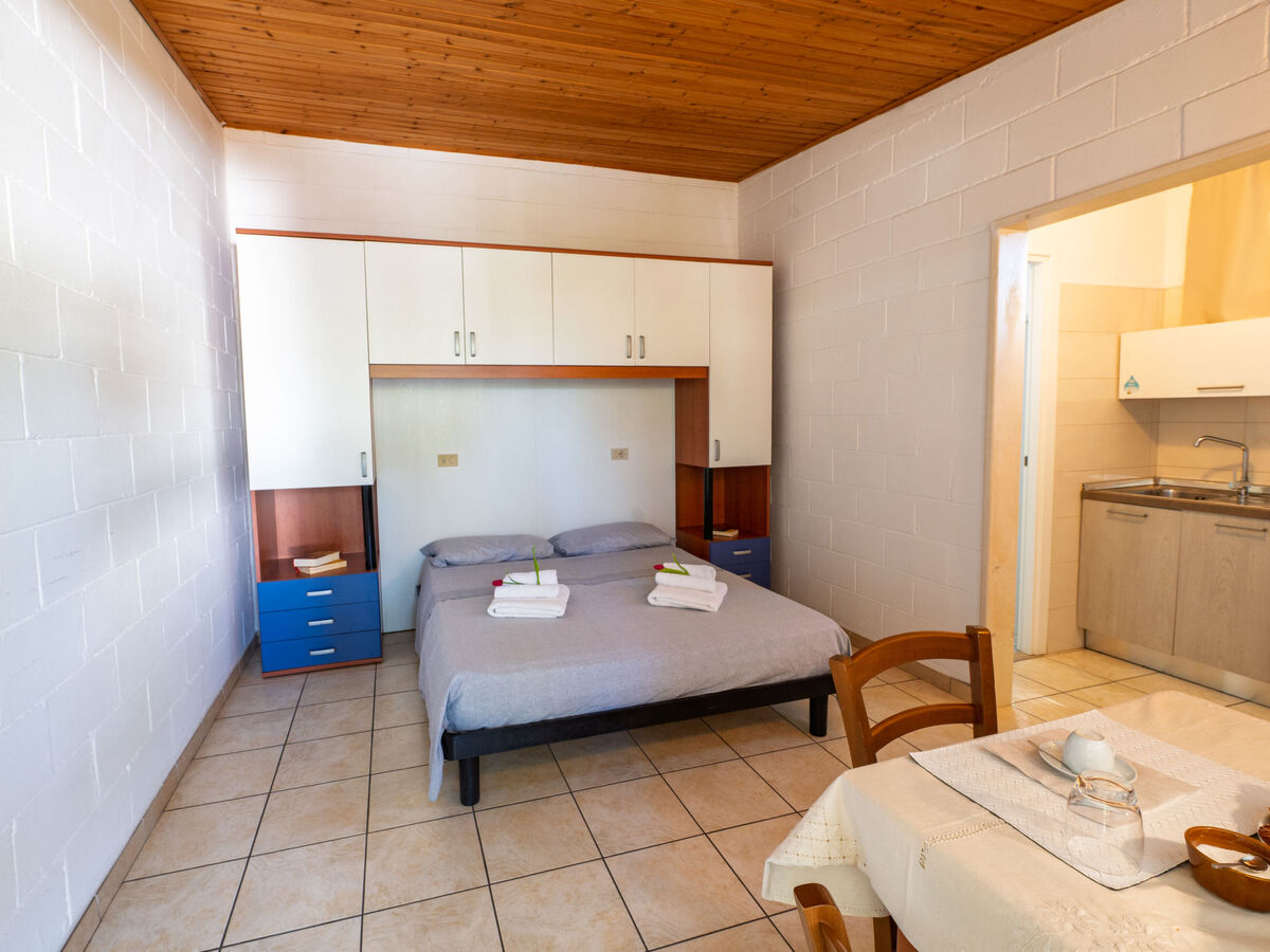 Aménagement fonctionnel: séjour/chambre à coucher avec 1 lit double, 1 lit pliant, table pour les repas, coin-cuisine et TV (satellite).