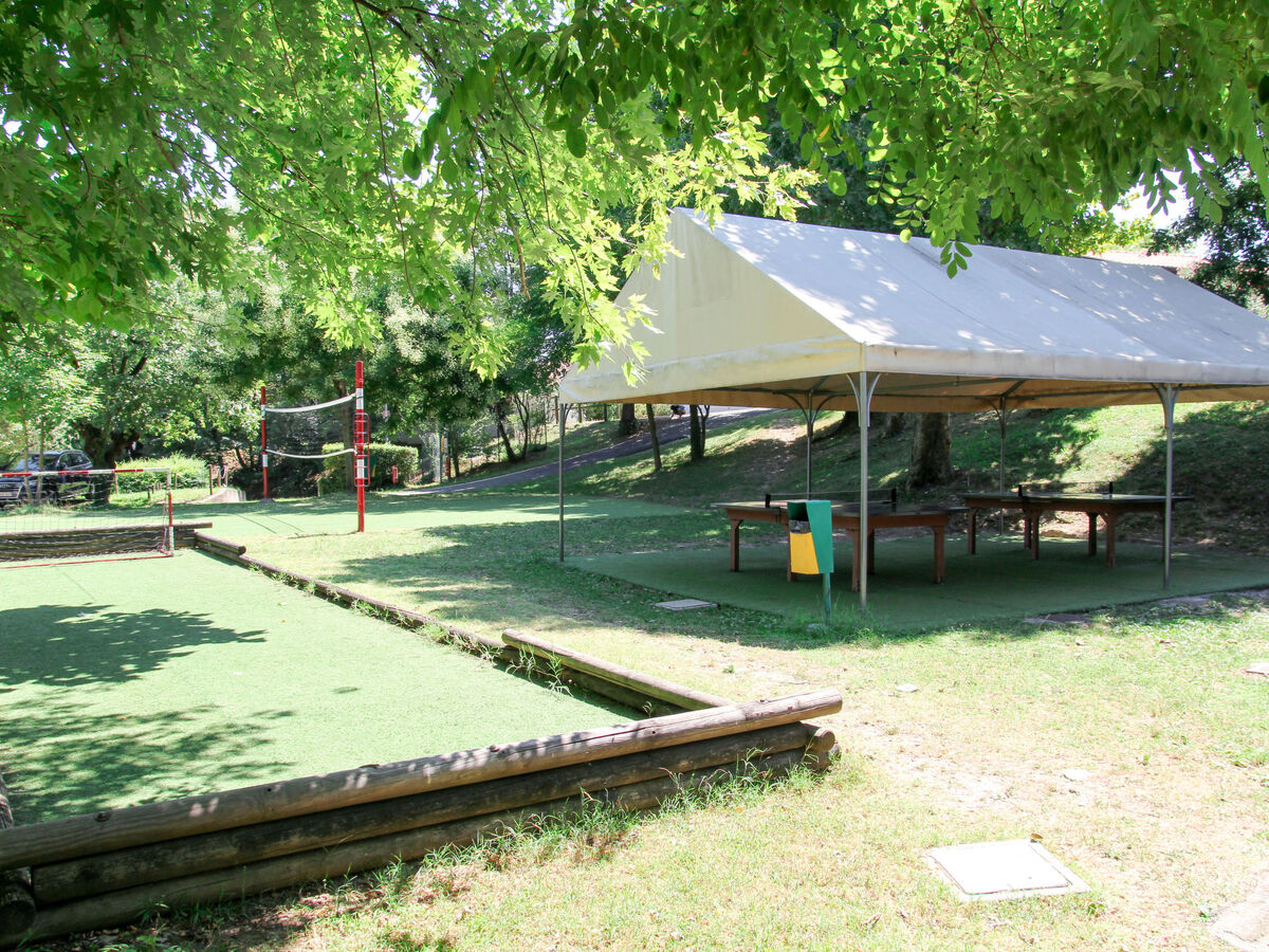 WC dans l'espace piscine, bassin pour les enfants, douche extérieure, tennis (en sus), ping-pong, terrain de pétanque, terrain de volley-ball, espace de jeux pour les enfants.
