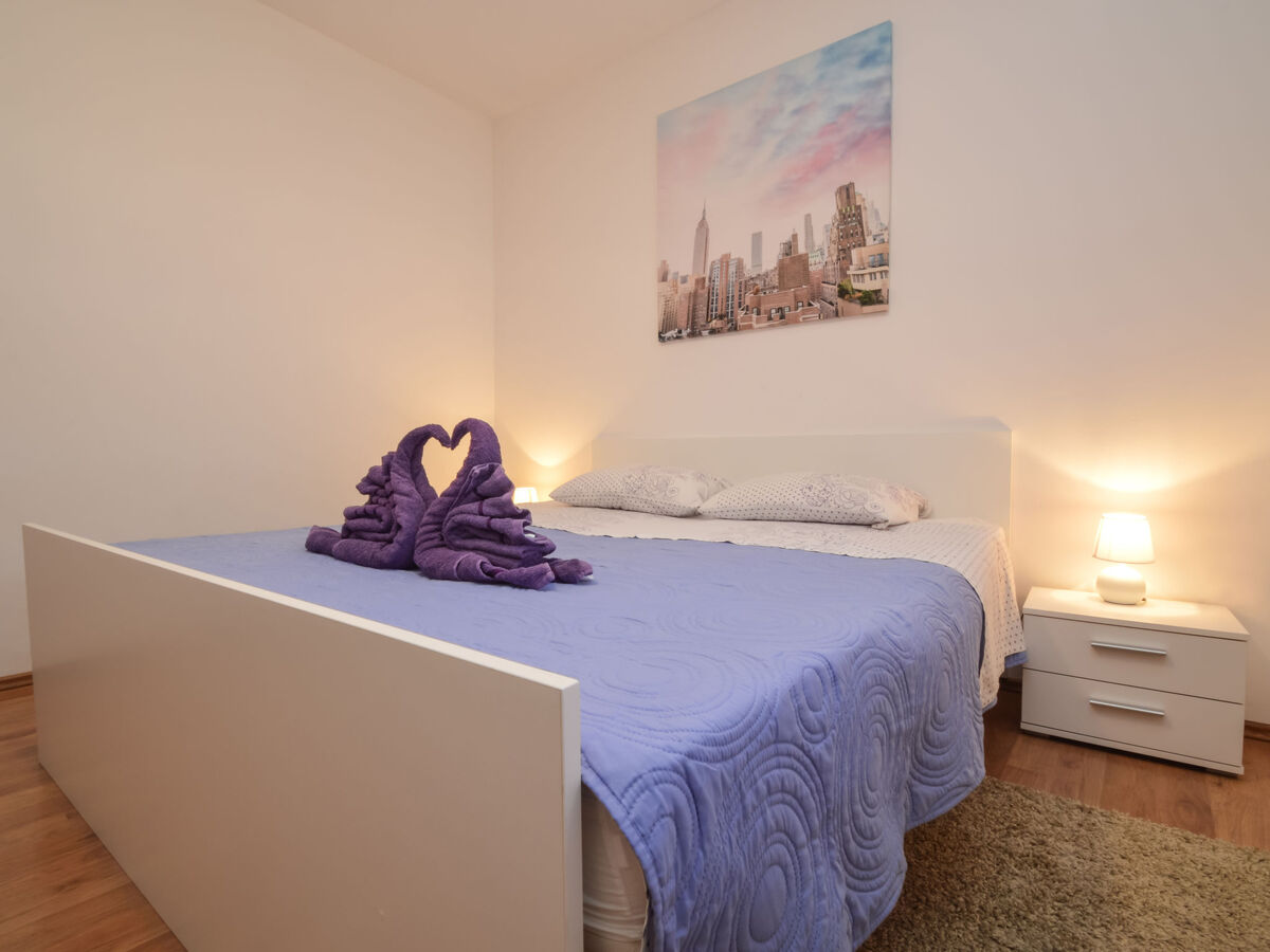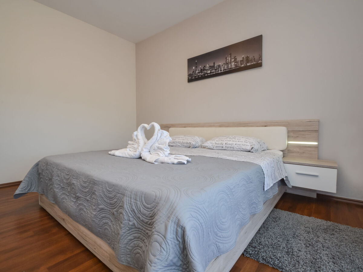 1 chambre avec 1 grand-lit (180 cm, longueur 200 cm).