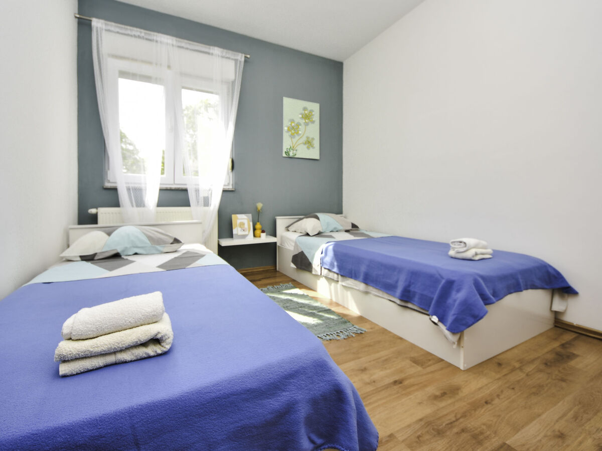 1 chambre avec 2 lits (90 cm, longueur 200 cm), TV (écran plat).