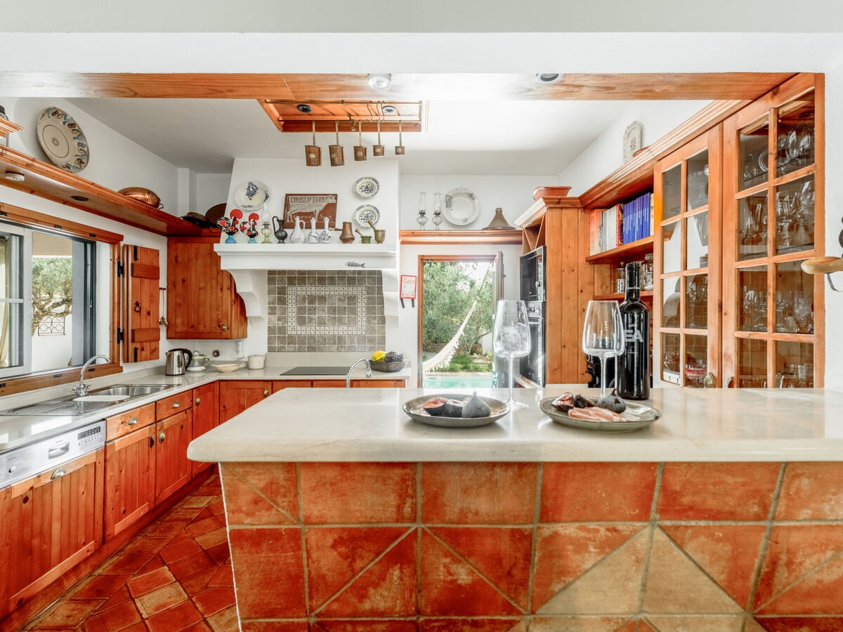 Cuisine (four, lave-vaisselle, 4 plaques vitrocéramiques, grille-pain, micro-ondes, congélateur, cafetière électrique, ilot de cuisine).
