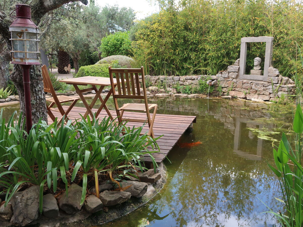 A usage privé: terrain 2'000 m2 (clôturé) avec pelouse et arbres, cour, étang, piscine (9 x 4 m, profondeur 100 - 200 cm, disponibilité saisonnière: 01.Jan.