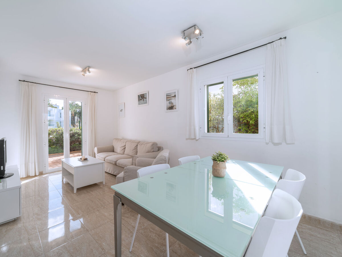 Spacieux et clair, aménagement fonctionnel et plaisant: séjour/salle à manger avec baie vitrée avec table pour les repas, TV, écran plat, air-conditionné et chauffage à air chaud.