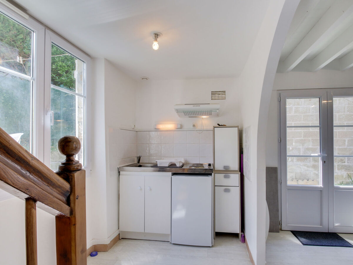 Petite cuisine ouverte (2 plaques de cuisson, mini-four, four, micro-ondes).