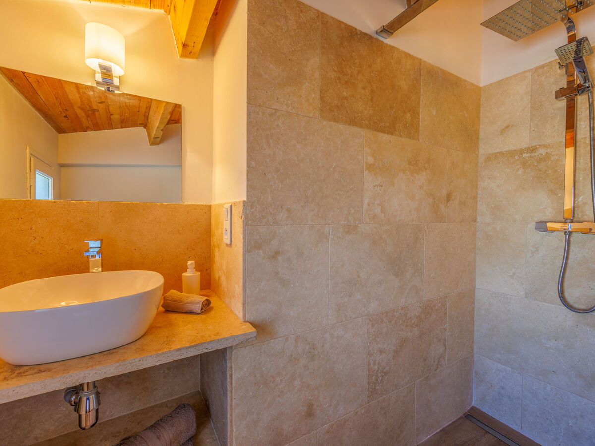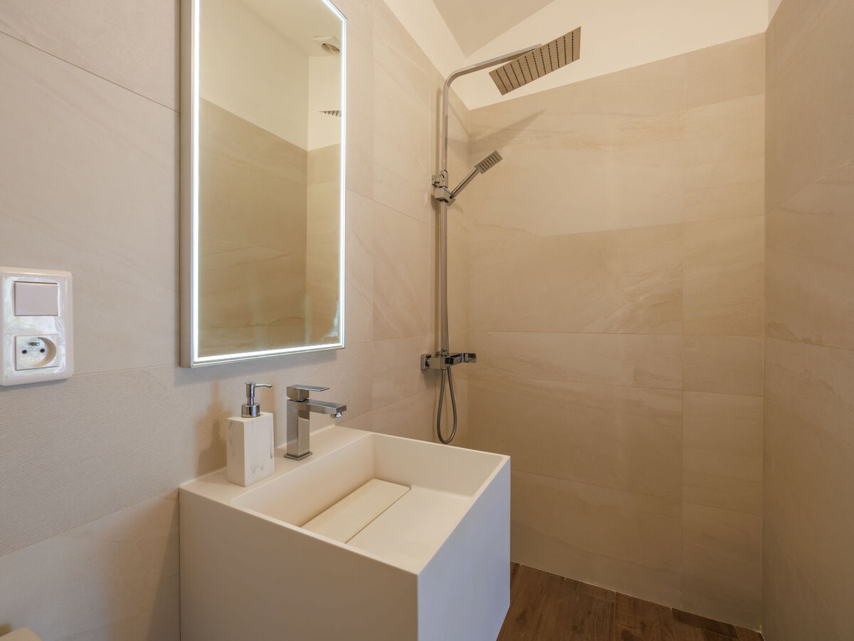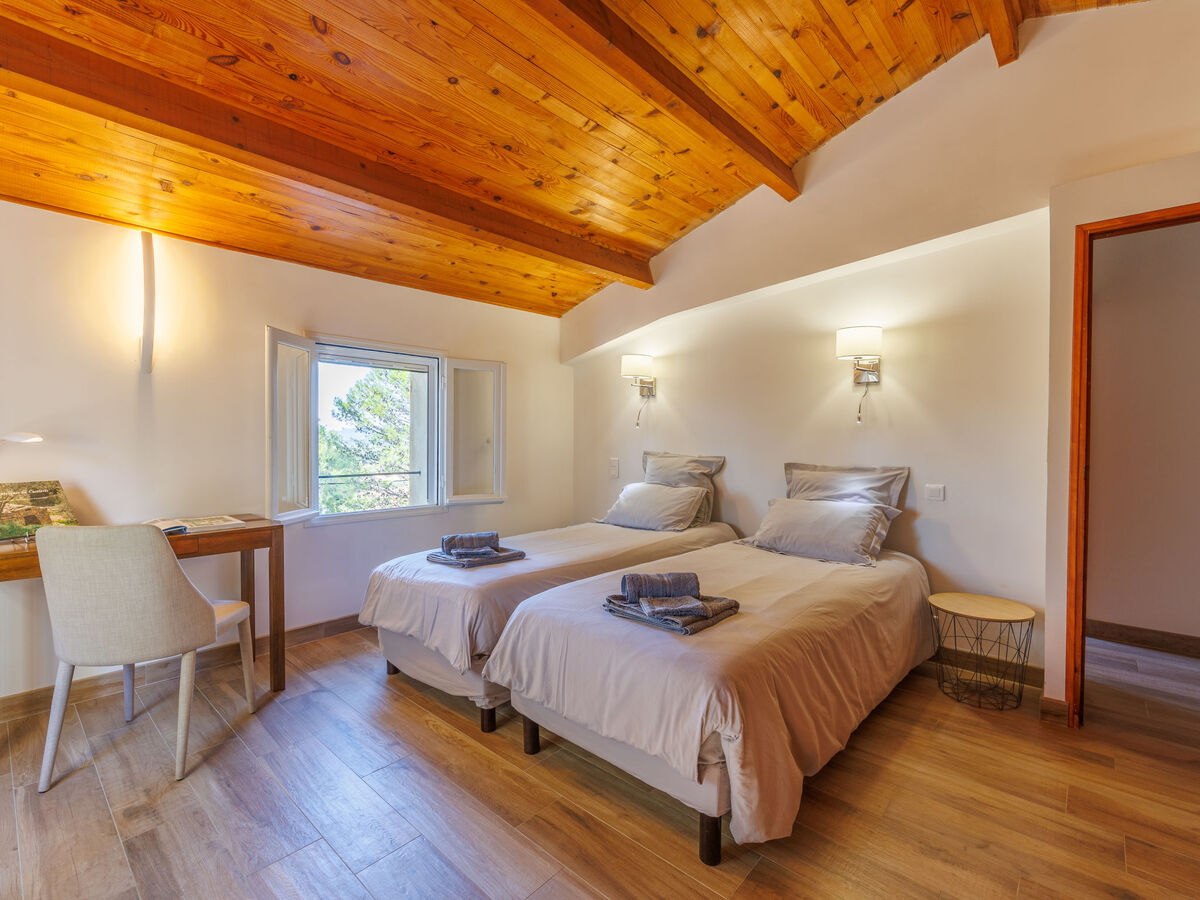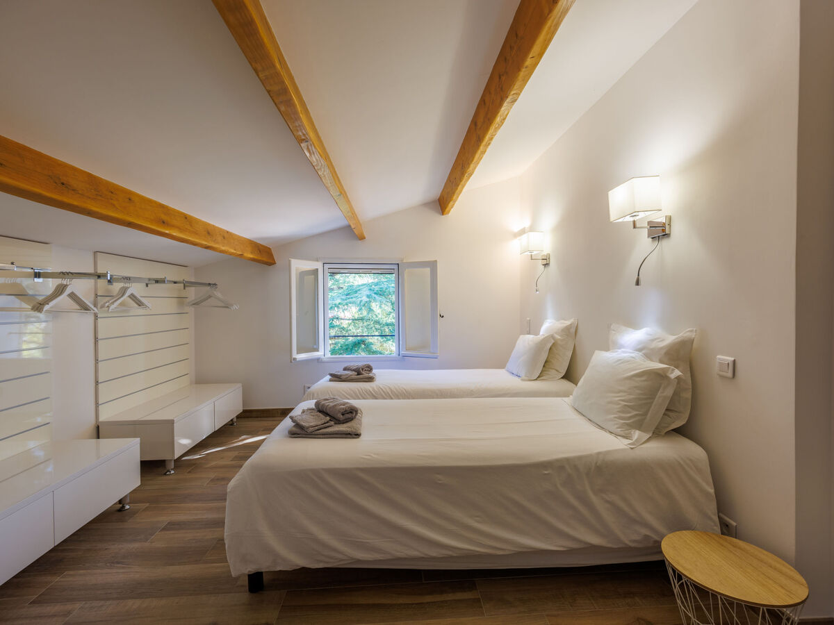 1 chambre avec 2 lits (90 cm, longueur 200 cm), douche/WC et ventilateur.