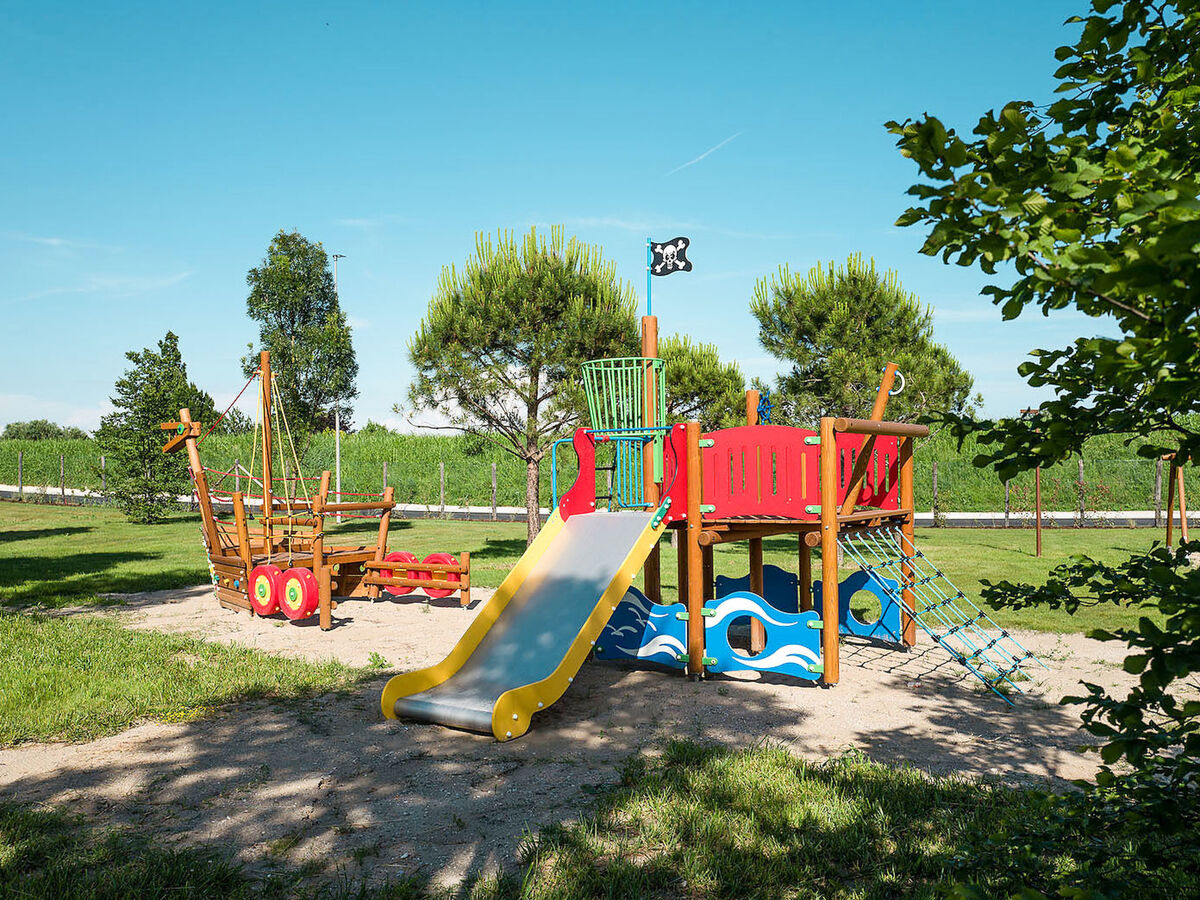 Dans le quartier de Riviera, à 3 km du centre de Lignano-Riviera, à 6 km du centre de Bibione, à 95 km du centre de Trieste, à 3.5 km de la mer, juste au bord de la rivière.