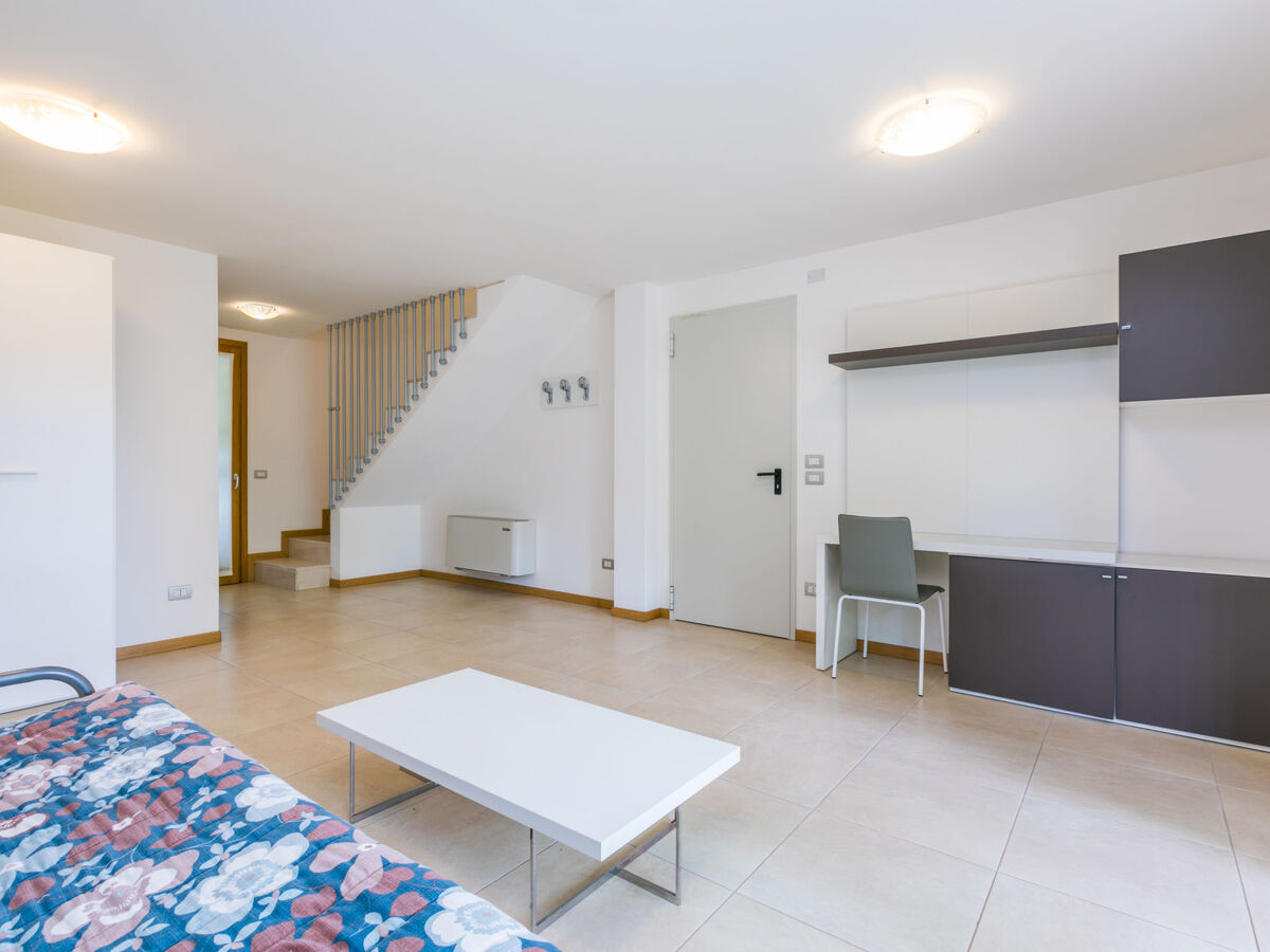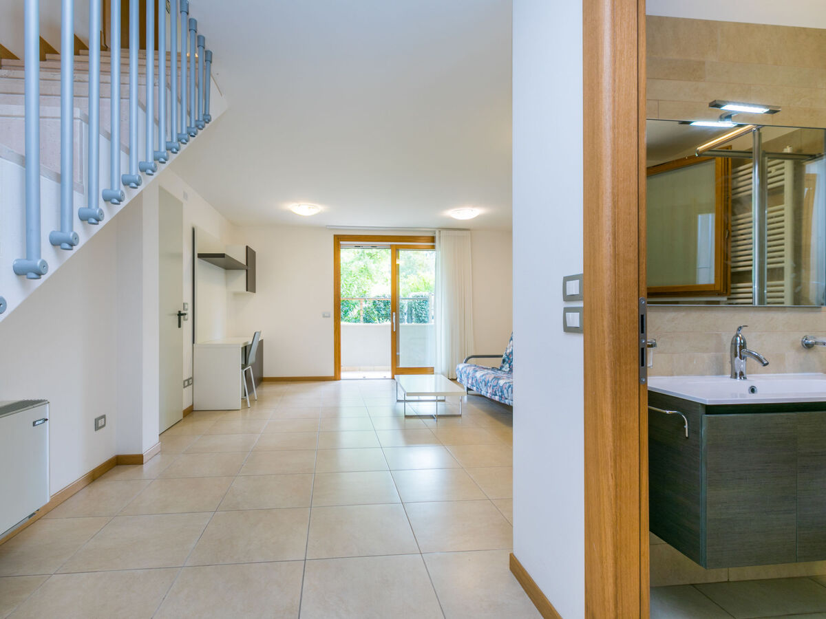 À l'étage inférieur: séjour/chambre à coucher ouvert avec 1 divan-lit (140 cm).