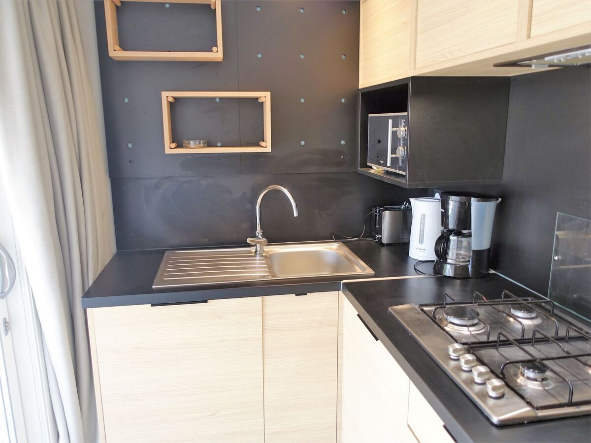 Coin cuisine (lave-vaisselle, 4 feux, bouilloire électrique, micro-ondes, congélateur, cafetière électrique).