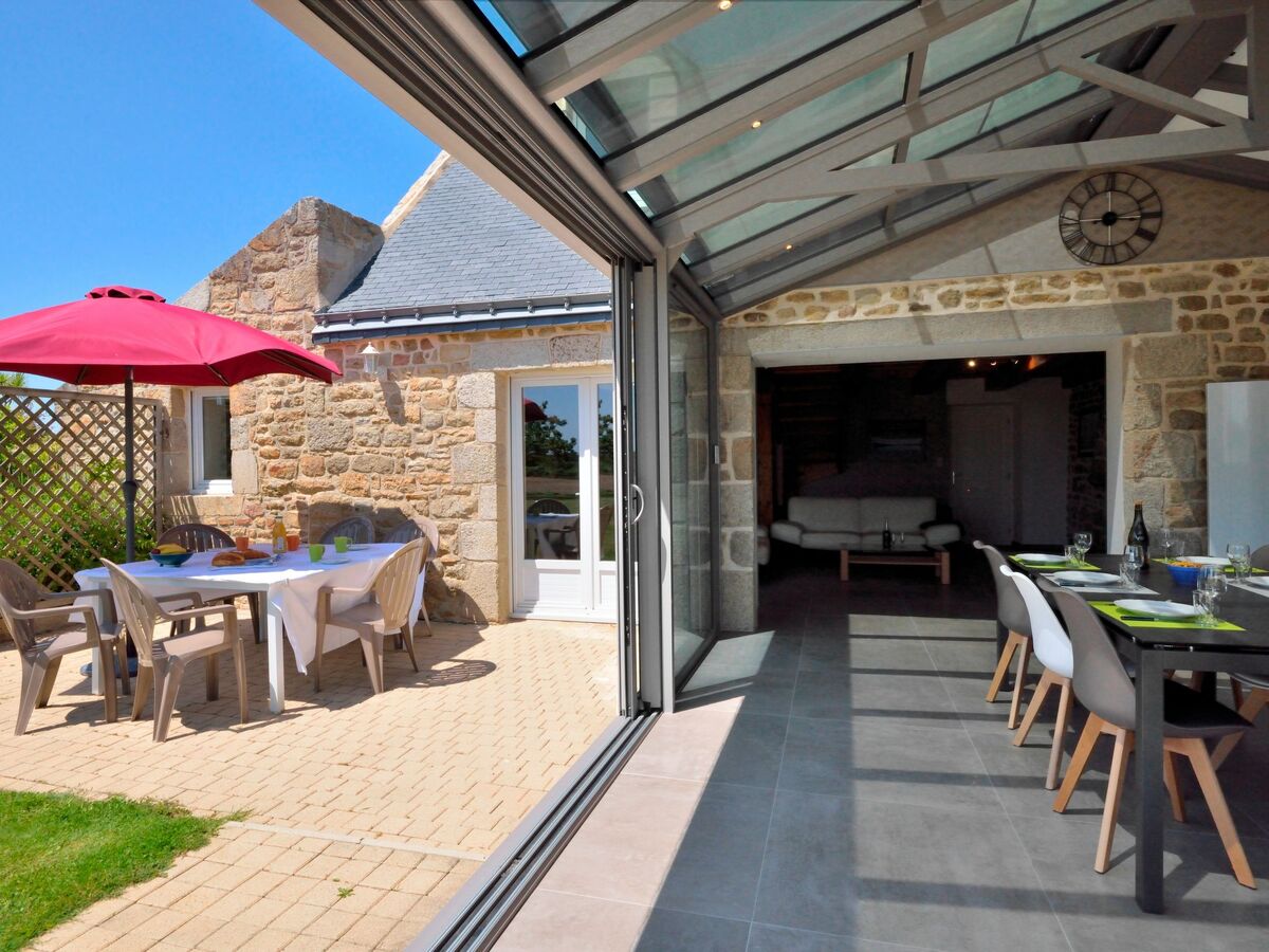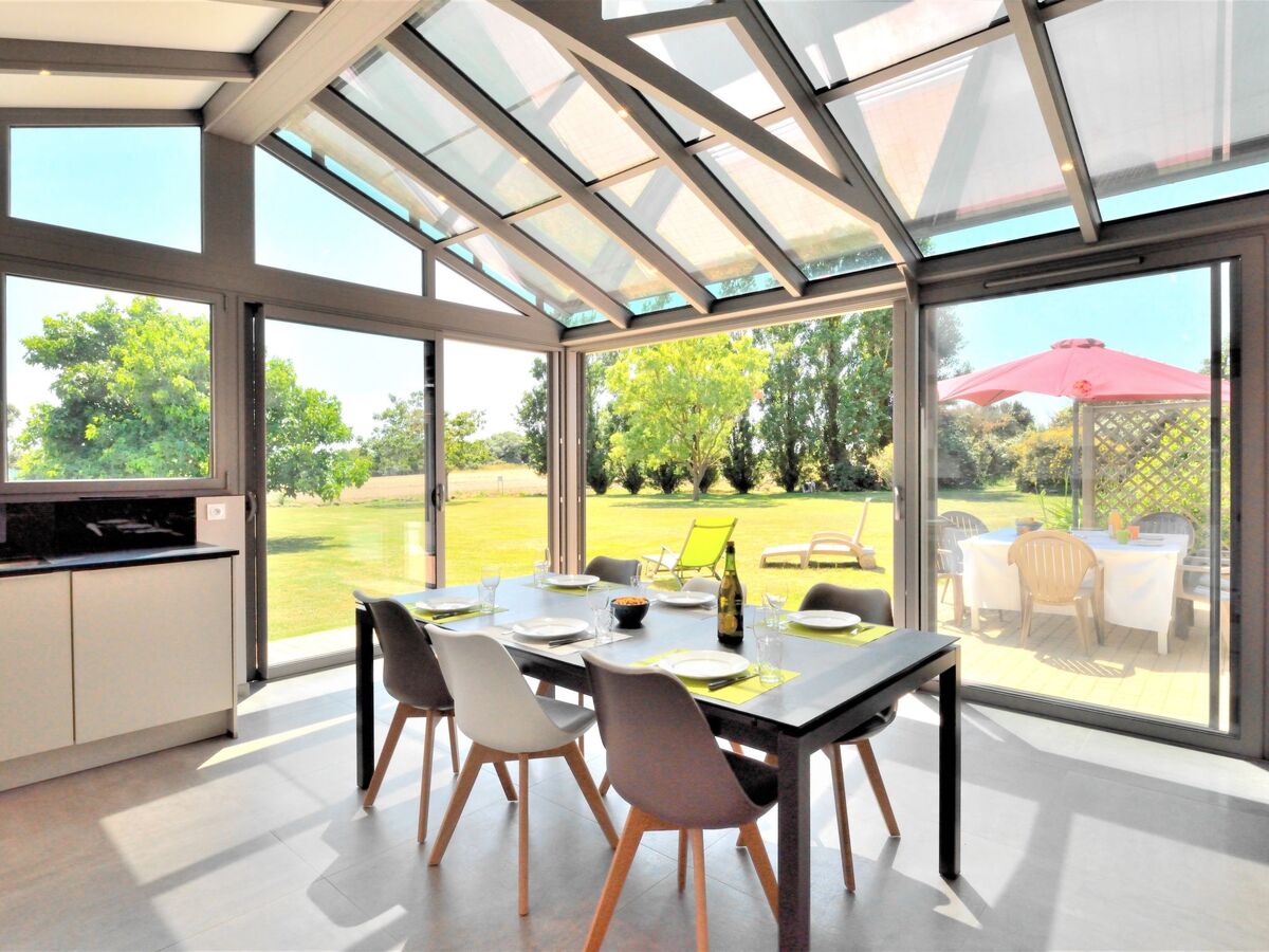 Rénovée en 2020, aménagement confortable: grand séjour/salle à manger avec véranda, baie vitrée avec cheminée, TV (satellite), chaînes de TV internationales et radio.