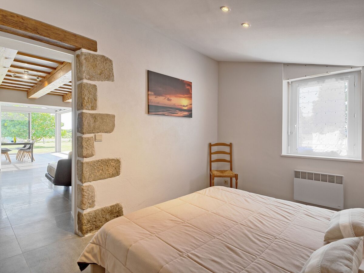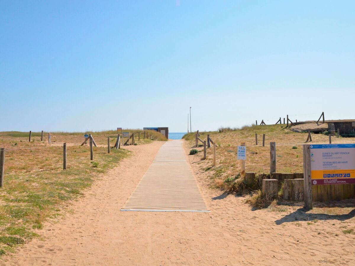 Magasins 5 km, arrêt de bus 12 km, plage de sable "Kervégant" 900 m.