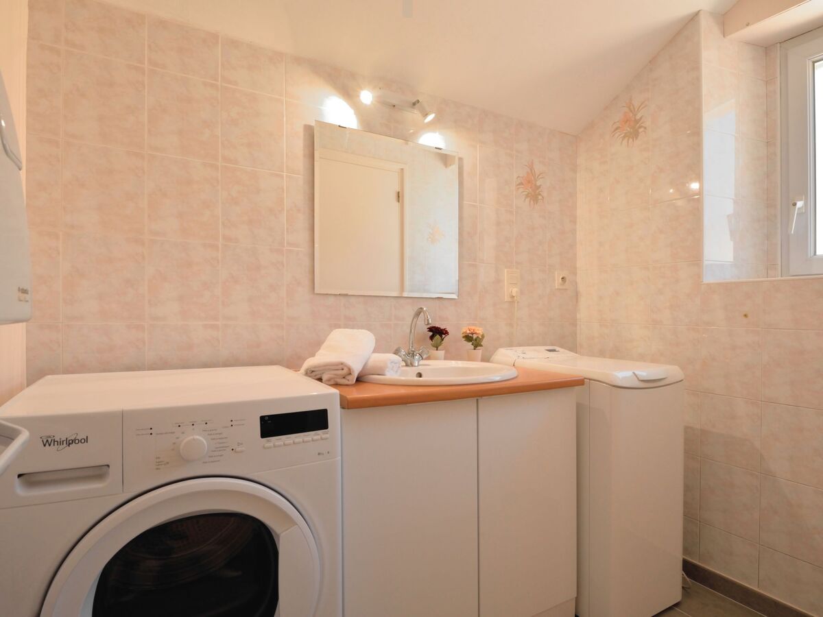 A disposition: lave-linge, sèche-linge, lit bébé.