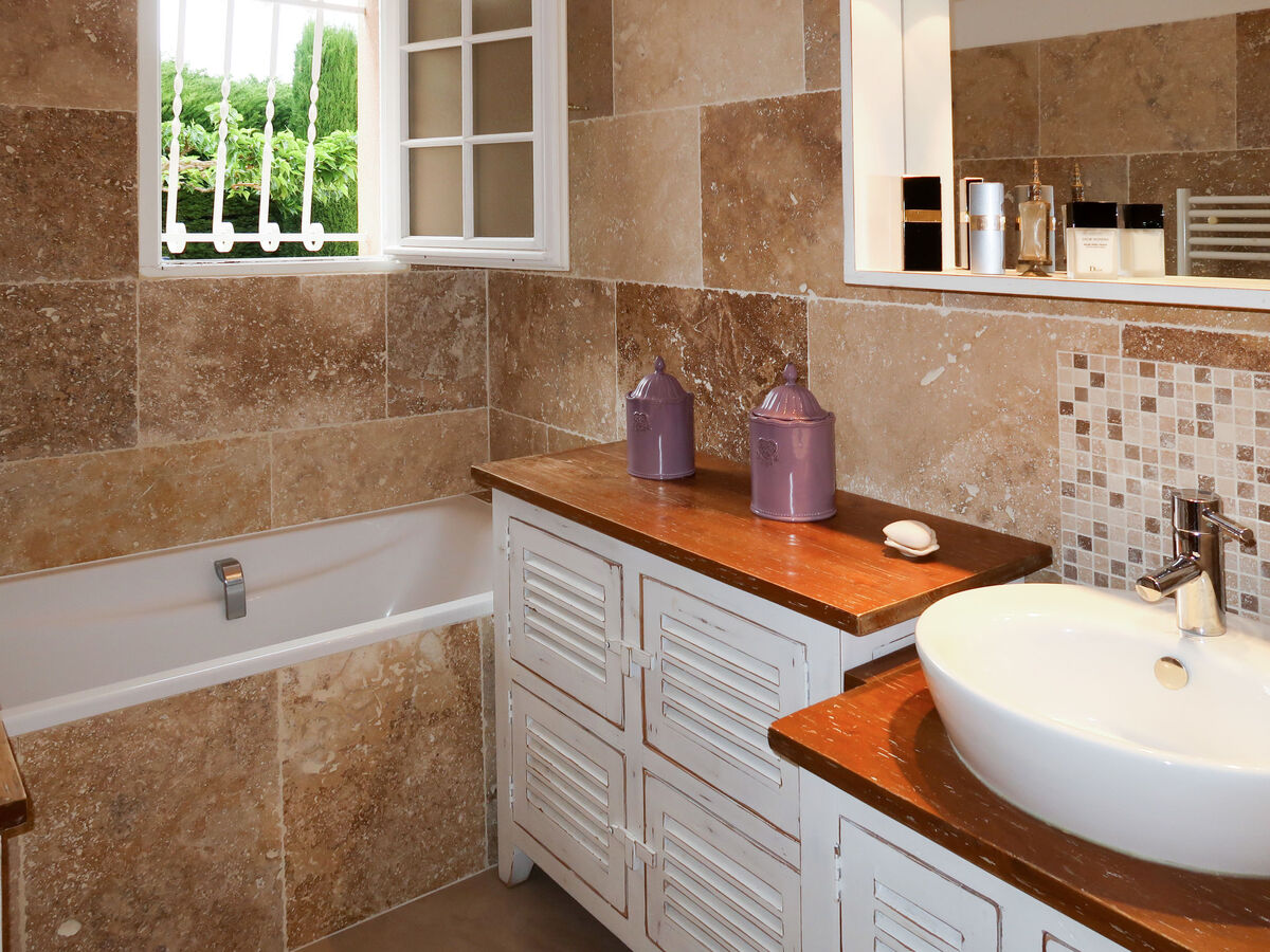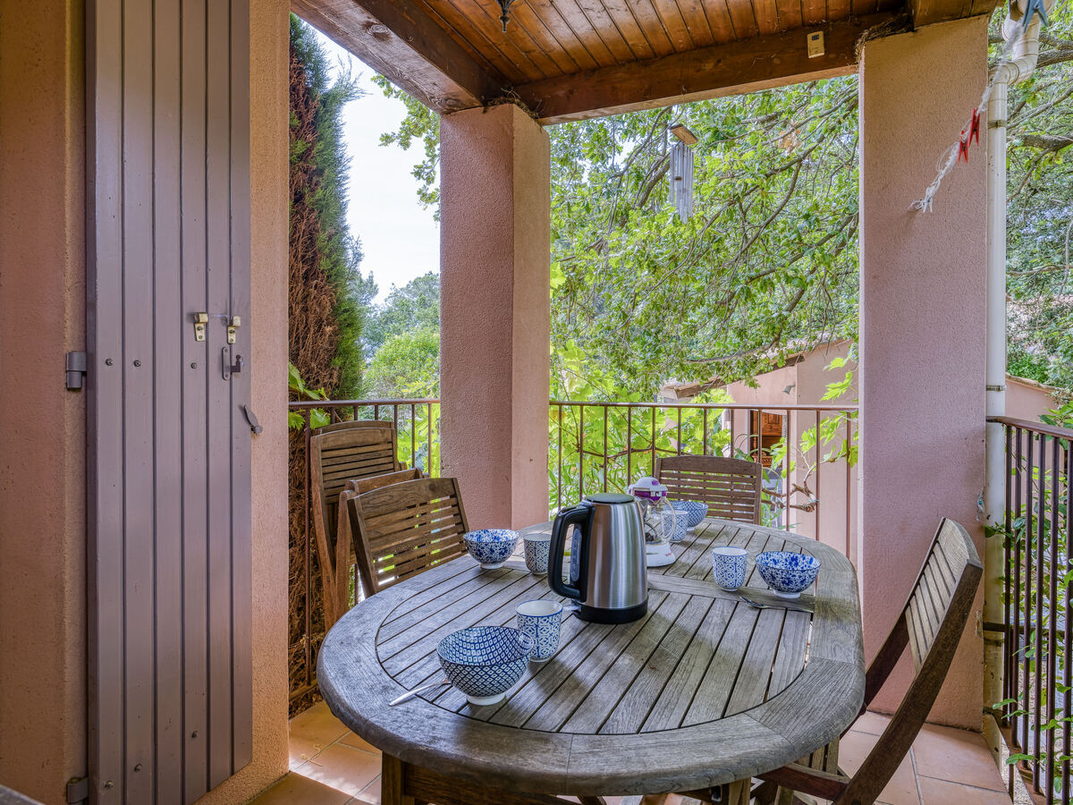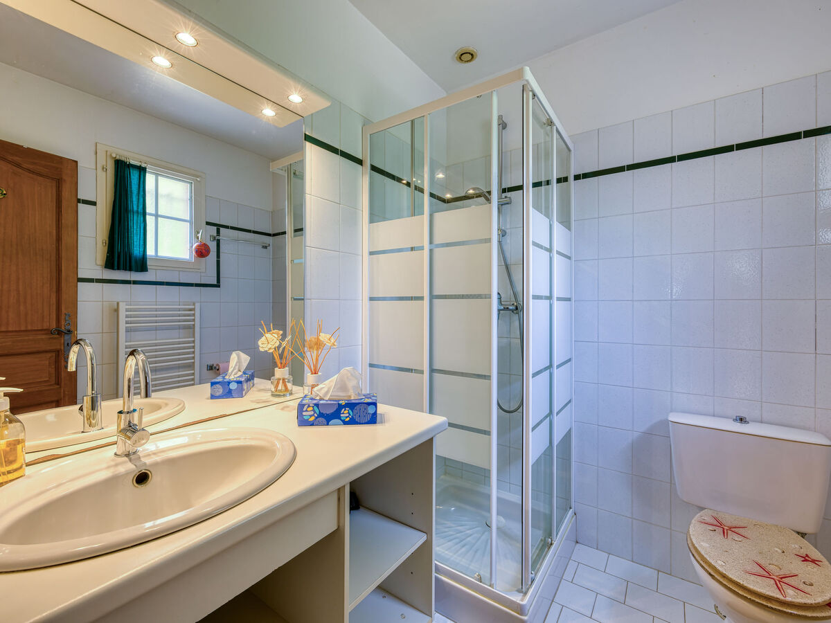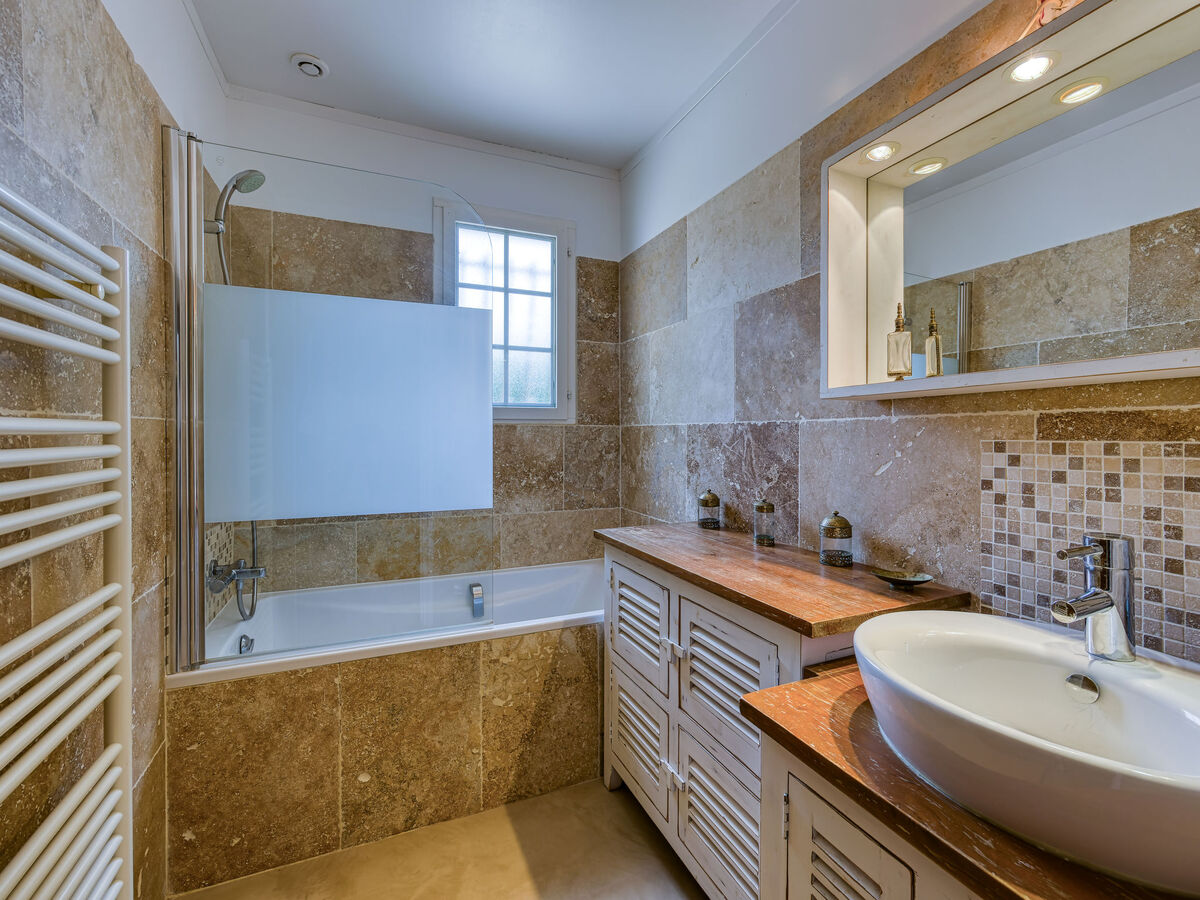 Douche extérieure, pool house avec réfrigérateur et plaque de cuisson, terrasse, place de parking (pour 3 voitures) sur le terrain.