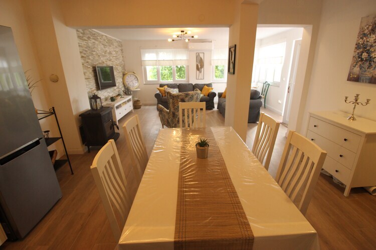 Rez-de-chaussée: (cuisine ouverte(bouilloire, grille-pain, plaque de cuisson(4 foyers), cafetière/percolateur, four, micro ondes, lave-vaisselle , combinaison réfrigérateur/congélateur), salle à manger-salon(Canapé-lit simple, TV(écran plat, satellite), table(7 personnes), climatisation), chambre(lit double(160 x 200 cm), climatisation), chambre(lit double(160 x 200 cm), climatisation), chambre(lit double(160 x 200 cm), climatisation), salle de bains(douche, lavabo, WC), salle de bains(douche, lavabo, WC), salle de bains(douche, lavabo, WC)) Bain à bulles, douche à infra rouge, lave-linge , terrasse(privé, couverte), jardin(privé, clôturé), barbecue, parking, chaises longues, piscine(privé, 8 x 4 m.), billard