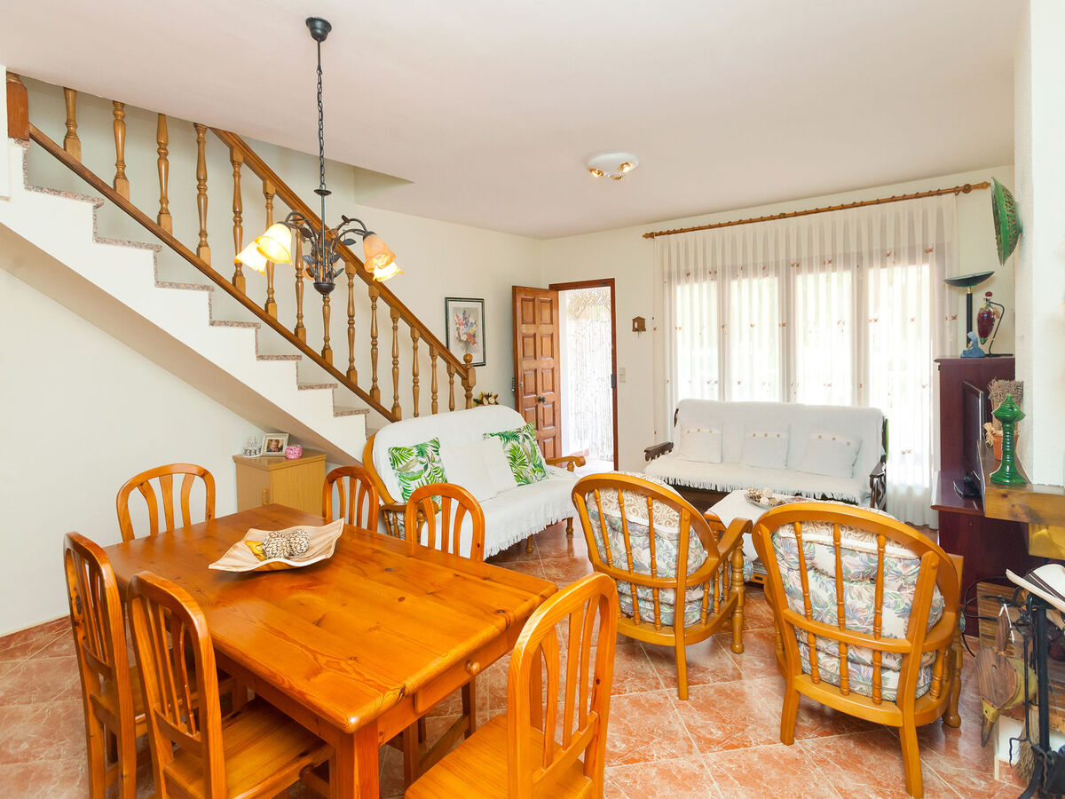 Aménagement confortable et agréable: séjour/salle à manger avec table pour les repas, Télévision numérique et ventilateur.