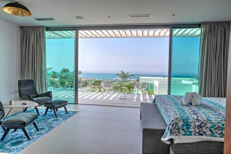 Cette villa face à la mer à Adeje dispose de 5 chambres et d'une piscine à débordement privée avec un salon de jardin pour se détendre. Pouvant accueillir jusqu'à 10 personnes, elle est idéale pour les familles et les grands groupes en vacances. Vous séjournerez à seulement 3,2 km de la plage de sable de La Caleta et à 4,5 km de Playa del Duque. Les amateurs de sport pourront profiter d'une partie de golf au Golf Costa Adeje, à 1 km. Vous pourrez également visiter la charmante ville de Costa Adeje, à 5,5 km. Cette villa de vacances luxueusement meublée offre tout le confort moderne. Outre la vue panoramique sur la mer Méditerranée, vous pourrez vous détendre sur la terrasse équipée de transats. La cuisine est entièrement équipée et dispose d'une cave à vin. Toutes les chambres sont dotées d'une salle de bain privative et de grands lits confortables. Un magnifique jardin permet aux enfants de jouer en toute liberté. Un lit bébé et une chaise haute sont fournis pour les plus jeunes.
