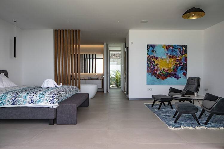 Rez-de-chaussée: (Salle de séjour(TV(smart TV, chaînes de télévision internationales), coin salon, système de musique sans fil, streamingservice, climatisation), cuisine(foyer(4 foyers, induction), robinet d'eau bouillante, cafetière/percolateur, four, four, micro ondes, lave-vaisselle , réfrigérateur(+ machine à glaçons), combinaison réfrigérateur/congélateur), chambre avec salle de bains(lit double(200 x 220 cm), TV(smart TV), coin salon, système de musique sans fil, streamingservice, baignoire, 2x douche, 2x lavabo, WC, climatisation), chambre avec salle de bains(2x lit simple(100 x 220 cm), système de musique sans fil, streamingservice, douche, lavabo, WC, climatisation), chambre avec salle de bains(2x lit simple(100 x 220 cm), TV(smart TV), système de musique sans fil, streamingservice, douche, lavabo, WC, climatisation), chambre avec salle de bains(2x lit simple(90 x 220 cm), TV(smart TV), système de musique sans fil, streamingservice, douche, lavabo, WC, climatisation)) Sous-sol: (Salle de séjour(TV(smart TV), table, coin salon, streamingservice, climatisation), cuisine ouverte(micro ondes, réfrigérateur), chambre(lit double, climatisation), salle de bains(douche, 2x lavabo, WC)) climatisation, terrasse, jardin, mobilier de jardin, transats, parking, piscine(privé, chauffée, 16 x 5 m.), lit d'enfant, chaise haute, salon de jardin, Pare-soleil