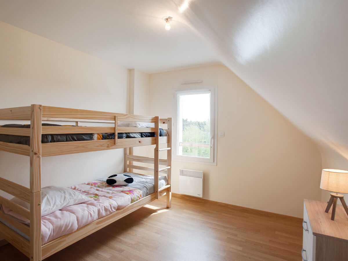 À l'étage supérieur: 1 chambre avec 1 x 2 lits superposés (80 cm, longueur 190 cm).