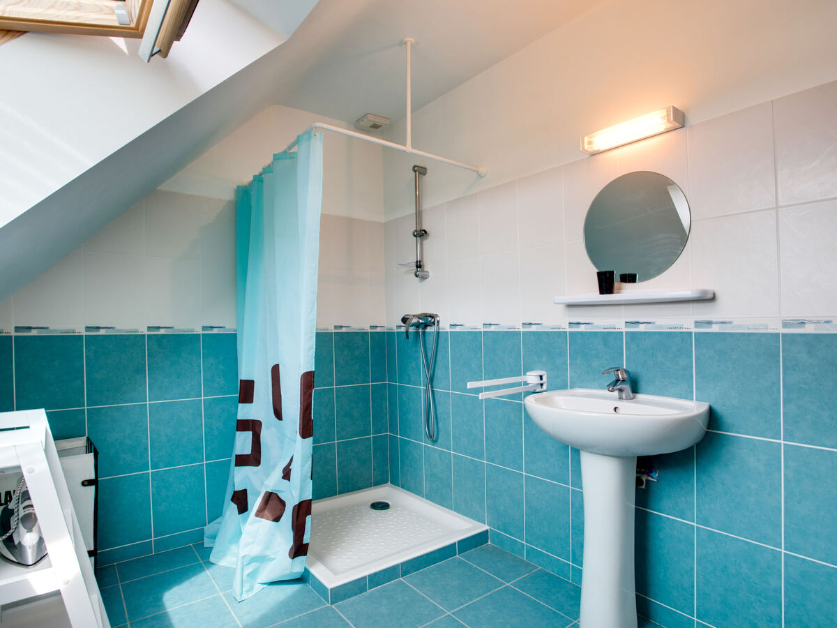 1 chambre avec 1 lit double (1 x 140 cm, longueur 190 cm), lavabo et douche.