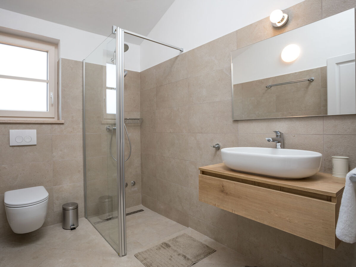 À l'étage supérieur: 1 chambre avec 2 lits (90 cm, longueur 200 cm), douche/WC et air-conditionné.