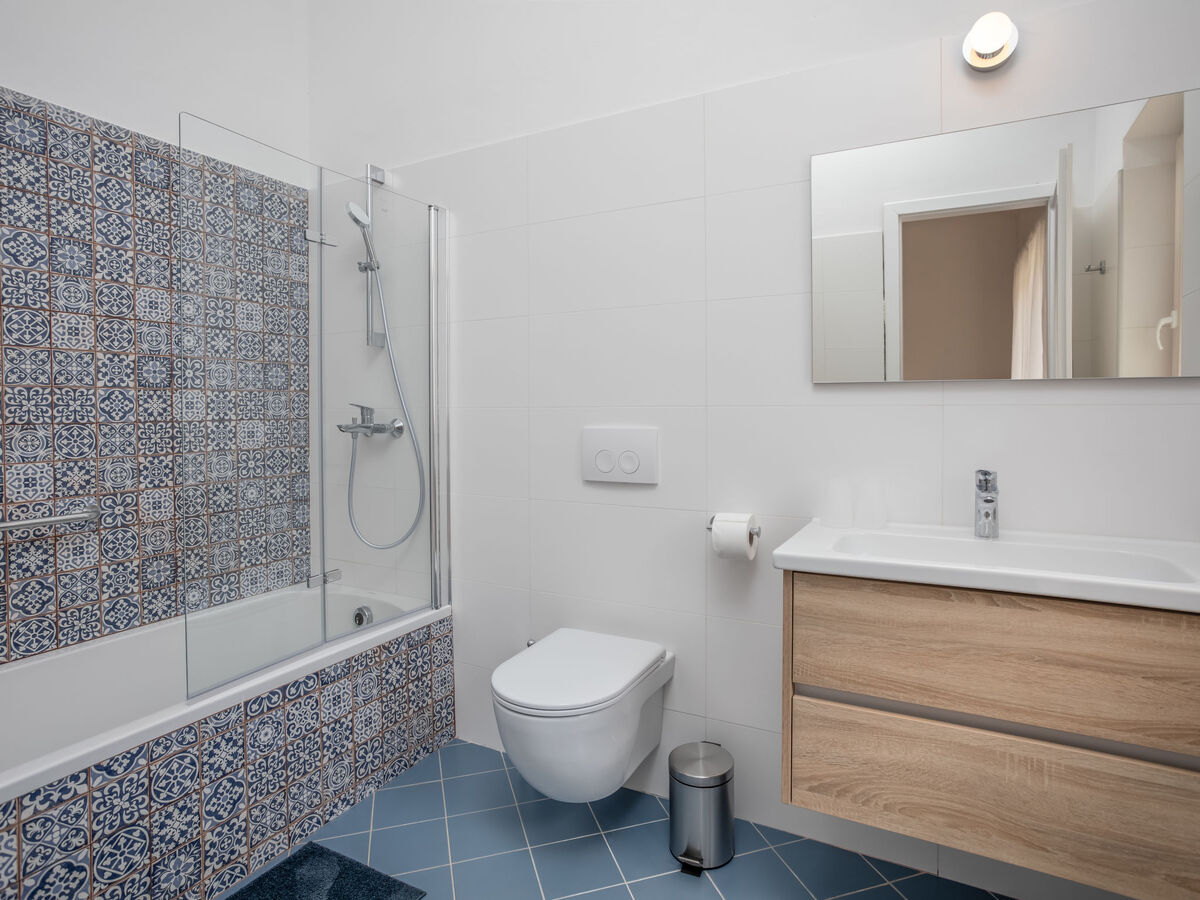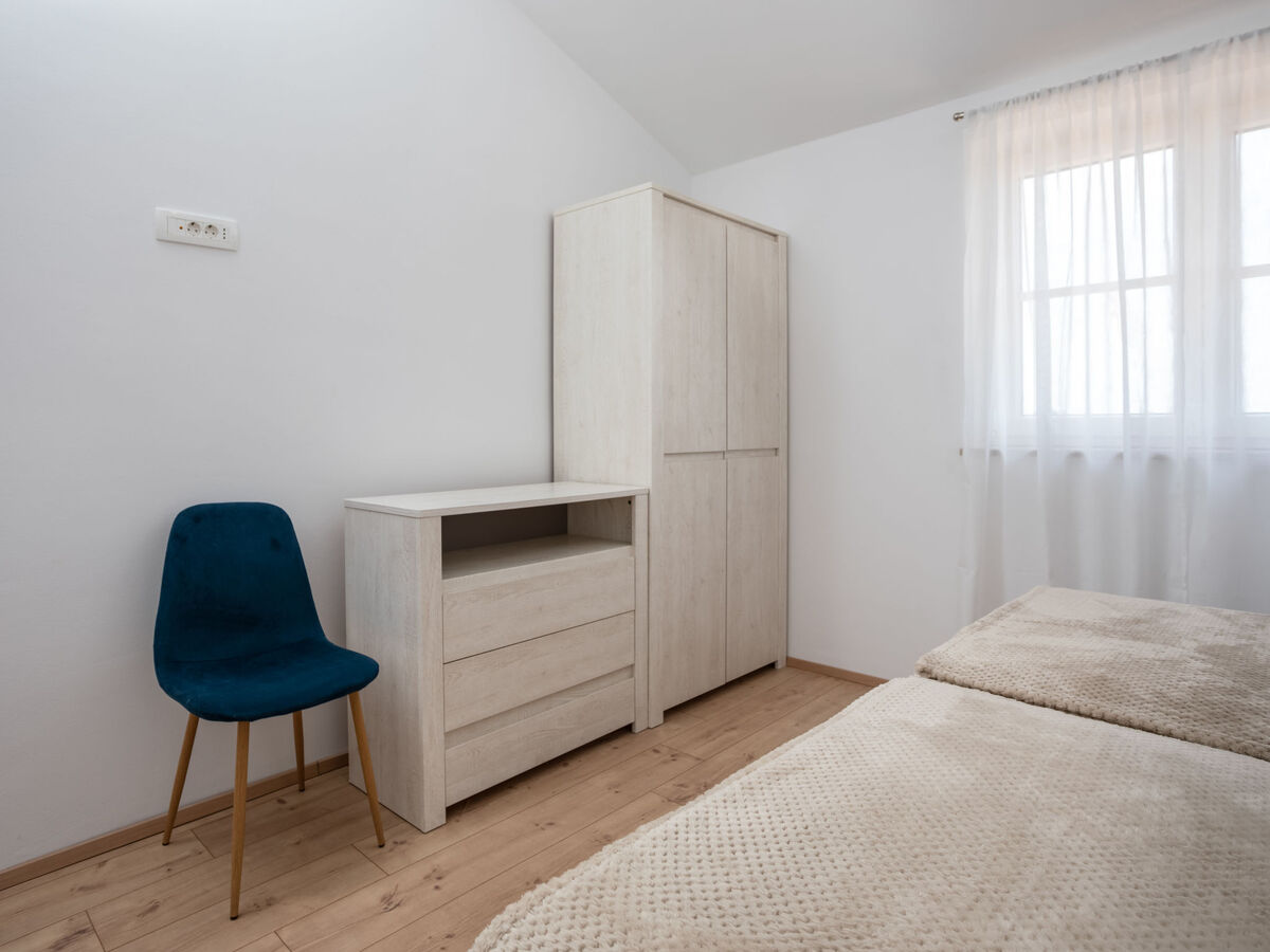 1 chambre avec 1 grand-lit (160 cm, longueur 200 cm), douche/WC et air-conditionné.