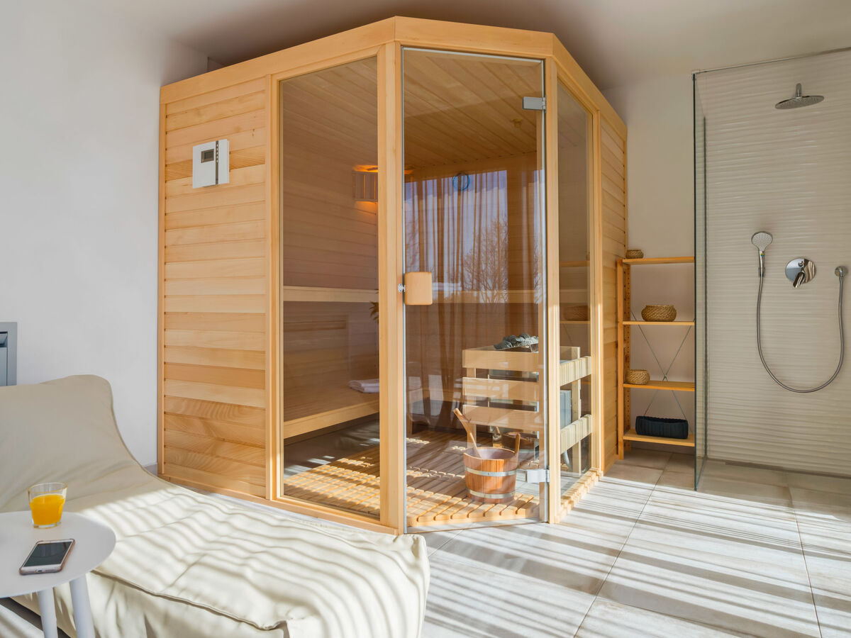 Espace spa au rez-de-chaussée avec : bain à remous, salle de relaxation, sauna, climatisation et douche (tout inclus dans le prix), sortie sur le jardin et la piscine.