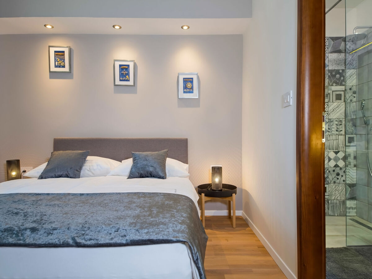 1 chambre avec 1 grand-lit (160 cm, longueur 200 cm), douche/WC.