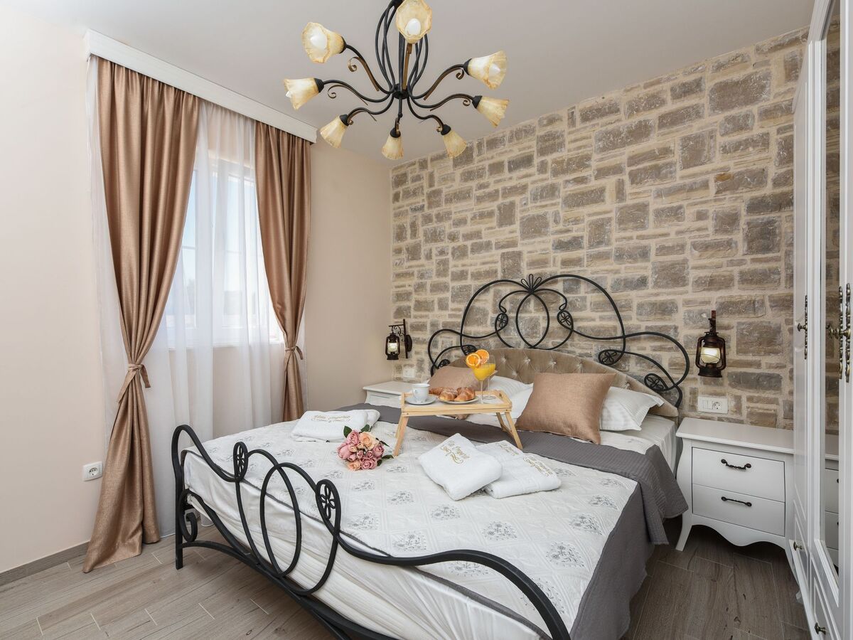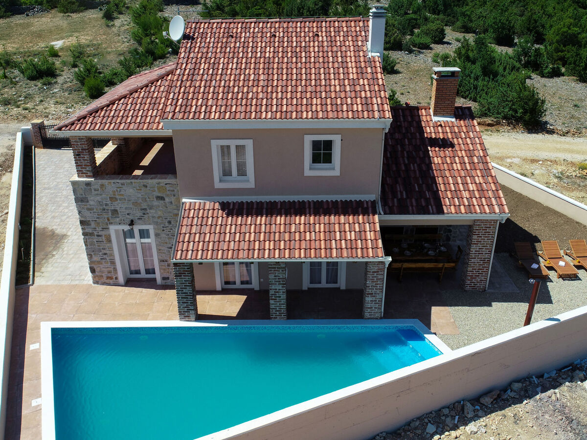 À 2 km du centre de Pridraga, situation tranquille, ensoleillée, surélevée, à 800 m de la mer, à 800 m de la plage.