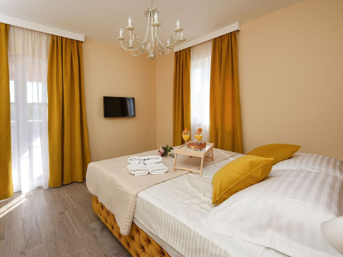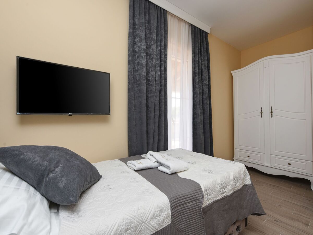 1 chambre avec 1 grand-lit (180 cm, longueur 200 cm), douche/WC et TV (satellite) (écran plat), air-conditionné.