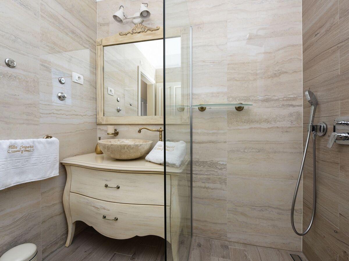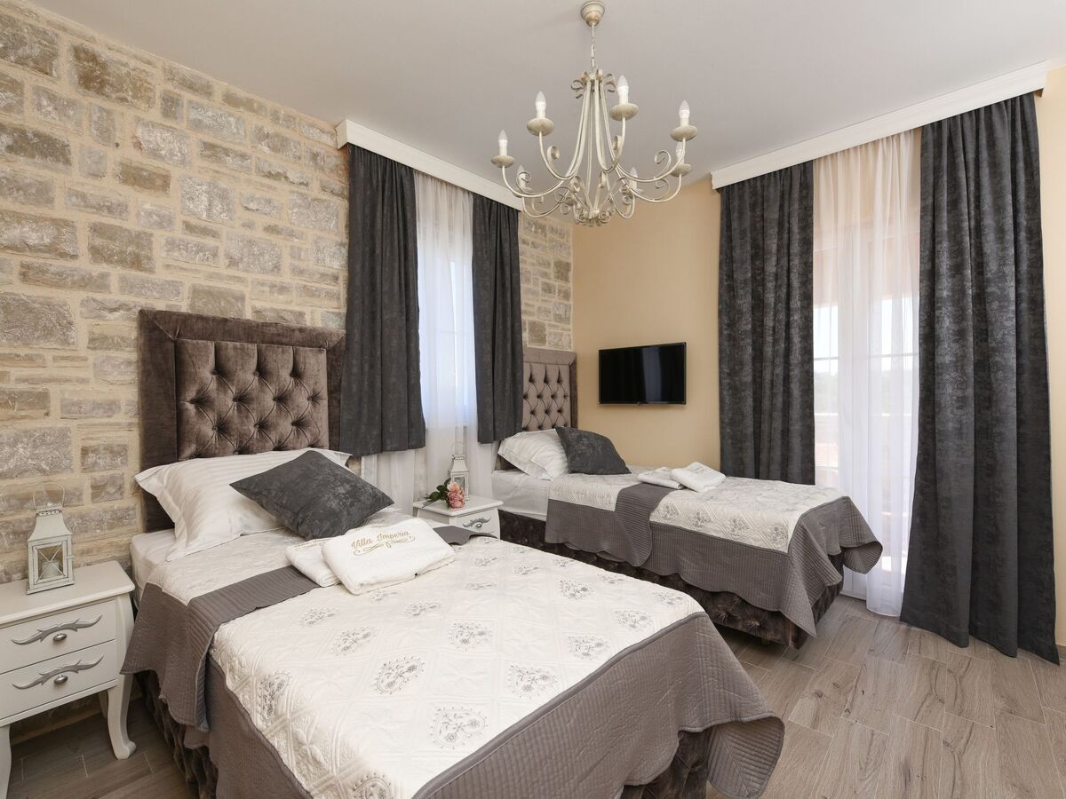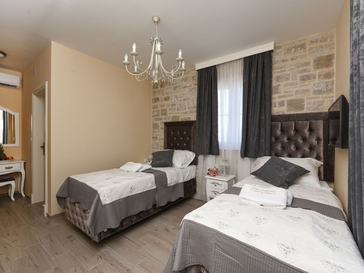 1 chambre avec 2 lits (90 cm, longueur 200 cm), douche/WC et air-conditionné.