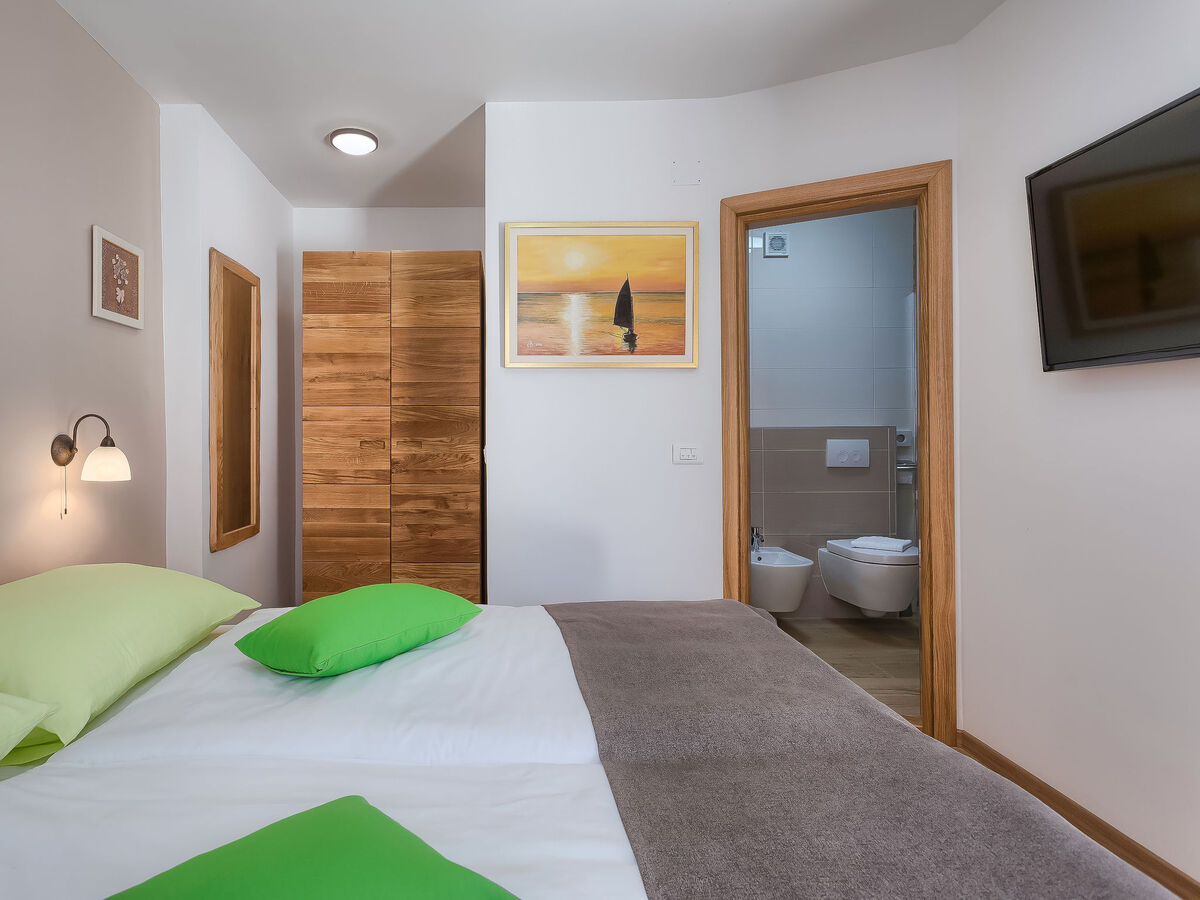 1 chambre avec 1 lit double (2 x 90 cm, longueur 200 cm), douche/bidet/WC et TV (satellite) (écran plat), air-conditionné.