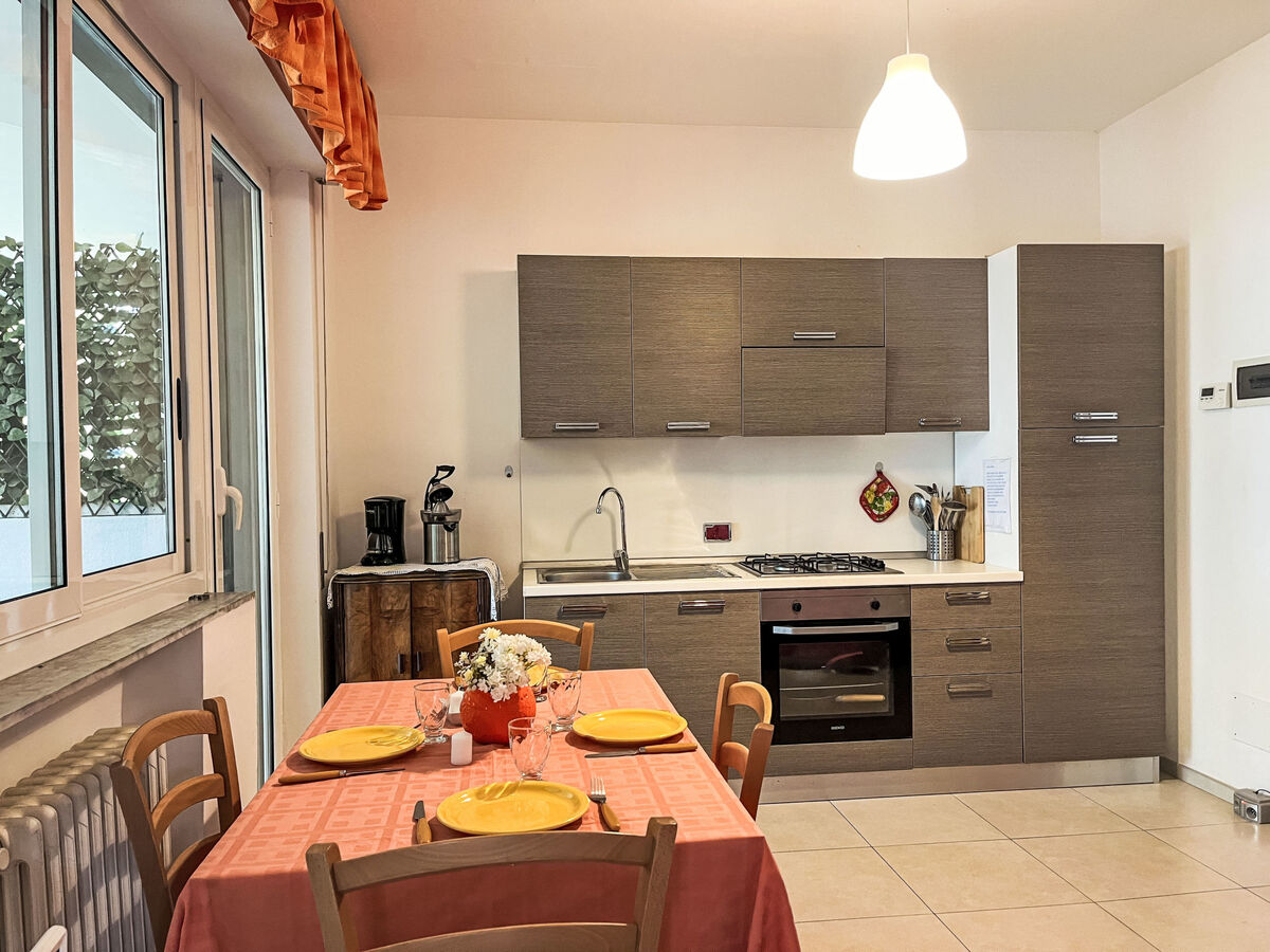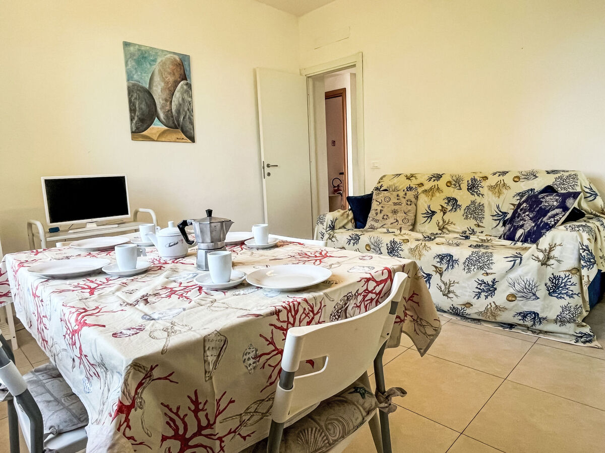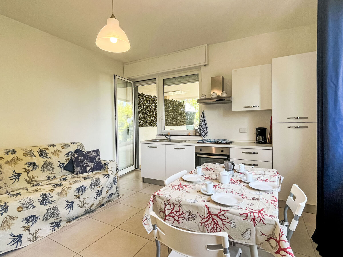 Clair, aménagement moderne: séjour/chambre à coucher avec 1 divan-lit double (140 cm), table pour les repas, coin-cuisine et TV (satellite).