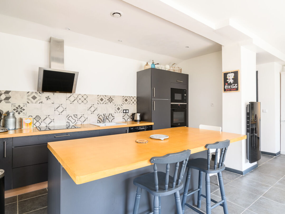 Cuisine ouverte (four, lave-vaisselle, 3 plaques à induction, grille-pain, bouilloire électrique, micro-ondes, congélateur, cafetière électrique, Capsules pour machine à café (Senseo) (NON INCLUSES)).