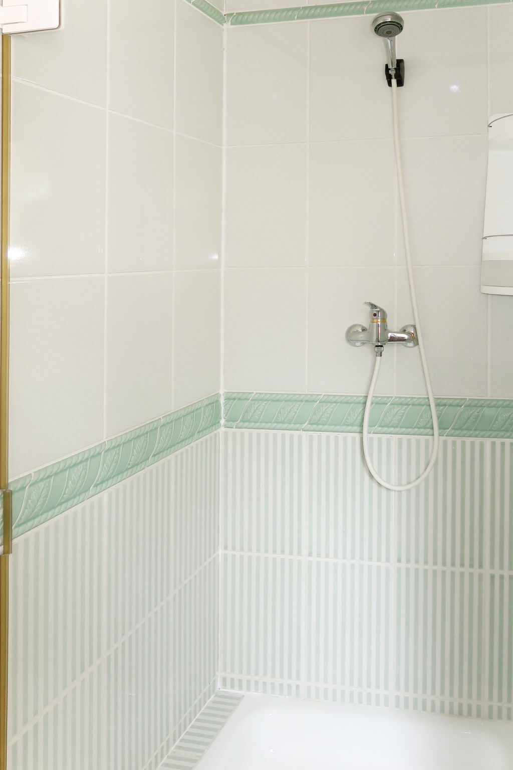 1 chambre avec 2 lits (95 cm, longueur 195 cm), bain/WC.