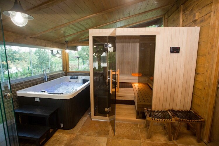 Rez-de-chaussée: (cuisine ouverte(bouilloire, grille-pain, plaque de cuisson(4 foyers, électrique), cafetière/percolateur, four, micro ondes, lave-vaisselle , combinaison réfrigérateur/congélateur), salle à manger-salon(canapé-lit double, TV(écran plat, digital, smart TV), table(6 personnes), cheminée, climatisation), salle de bains(douche, lavabo, WC, lave-linge , table à repasser, fer à repasser, sèche-cheveux), salle de relaxation(Bain à bulles(dans la maison), sauna), chauffage, terrasse(privé, clôturé, 40 m2), salon de jardin) Au 1er étage: (chambre(Lit rabattable simple, lit double(180 x 210 cm), TV, balcon, climatisation), chambre(Lit rabattable simple, lit double(180 x 210 cm), TV, balcon, climatisation), chauffage) jardin(privé, clôturé, aménagé, illuminé, 1100 m2), mobilier de jardin, transats, barbecue, parking, vélos disponibles