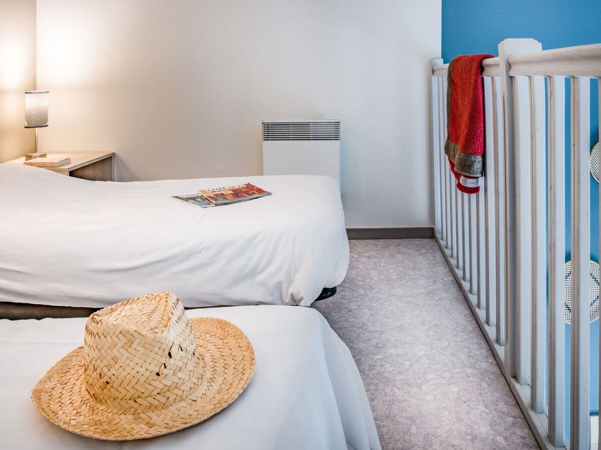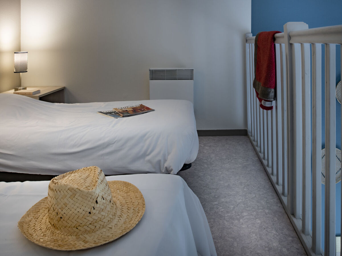 À l'étage supérieur: galerie ouverte avec 2 lits.