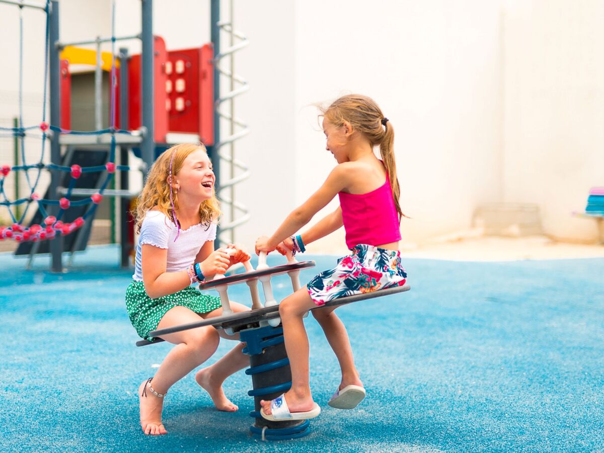 Bassin pour les enfants, terrain de pétanque, espace de jeux pour les enfants.
