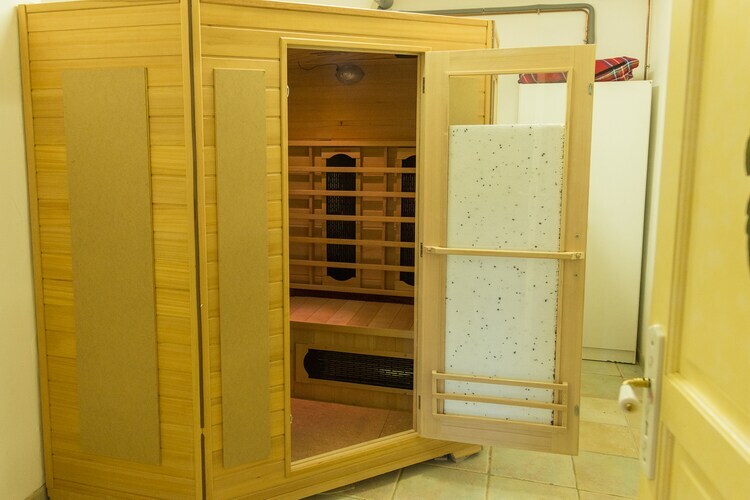 Rez-de-chaussée: (buanderie (sèche-linge, lave-linge , lave-linge ), salle de fitness(appareils de fitness), salle de jeux(tennis de table/ping-pong), sauna(douche, sauna à infrarouge), réserve(réfrigérateur), WC) Au 1er étage: (cuisine(bouilloire, grille-pain, plaque de cuisson, hotte, cafetière/percolateur, four, micro ondes, lave-vaisselle , combinaison réfrigérateur/congélateur), salle à manger-salon(TV(satellite), table, cheminée, coin salon), chambre(lit double), chambre(2x lit simple), salle de bains(baignoire, douche, lavabo, WC, chauffage(électrique)), WC, chauffage(central)) Au 2ème étage: (chambre(lit double, climatisation), chambre(lit simple, lit simple, climatisation), salle de bains(douche, lavabo, WC, chauffage(électrique)), chauffage(central)) garde-skis, garage, abri pour voiture, poêle, bar, portes-fenêtres, patio, chauffage(central), chauffage(chauffage par le sol), terrasse, terrasse sur le toit, jardin(privé, clôturé, aménagé, illuminé, 500 m2), garage à vélos, mobilier de jardin, transats, barbecue, parking, chaises longues, parasol, piscine(privé, chauffée, 10 x 4 m., ouvert de Mai jusqu'à (inclus) Sept), lit d'enfant, table à repasser, jeux de société