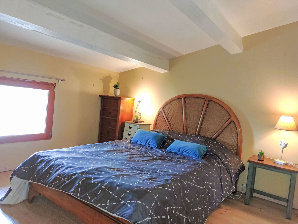 À l'étage inférieur: 1 chambre avec 1 grand-lit (1 x 140 cm, longueur 190 cm).