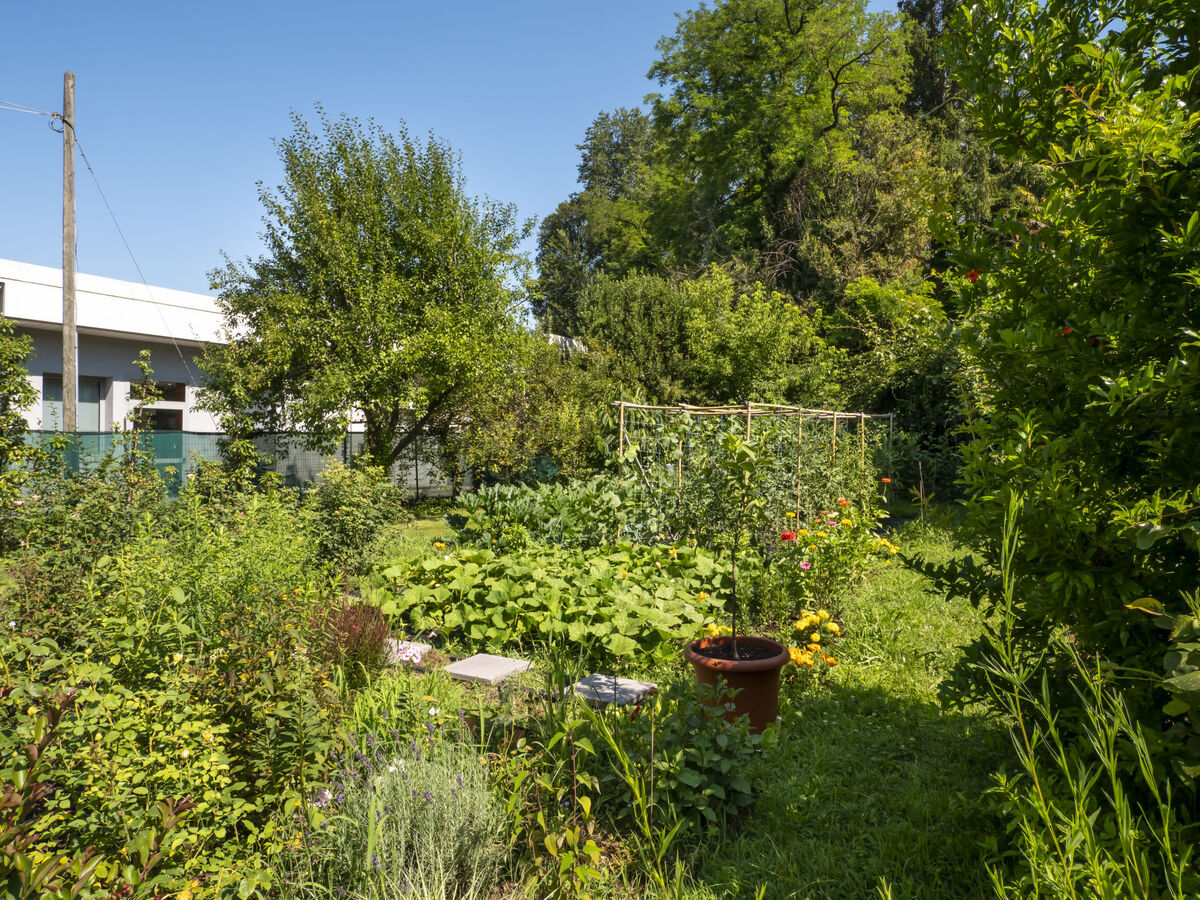 A usage privé: terrain 700 m2 (clôturé), beau jardin entretenu avec pelouse et arbres, place de parking près de la maison sur le terrain.