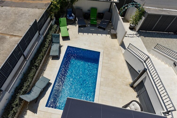 À l'intérieur, la villa dispose de spacieux espaces salon et salle à manger avec télévision numérique à écran plat, de deux cuisines entièrement équipées et de six chambres élégantes, chacune dotée de la climatisation et d'un balcon ou d'une terrasse privés. Vous pourrez vous détendre dans le bain à remous sur le toit-terrasse, profiter d'un repas en plein air avec barbecue ou vous rafraîchir dans la piscine privée chauffée. Une douche solaire, un jardin clôturé et éclairé et un parking privé sont également à votre disposition pour un séjour confortable.