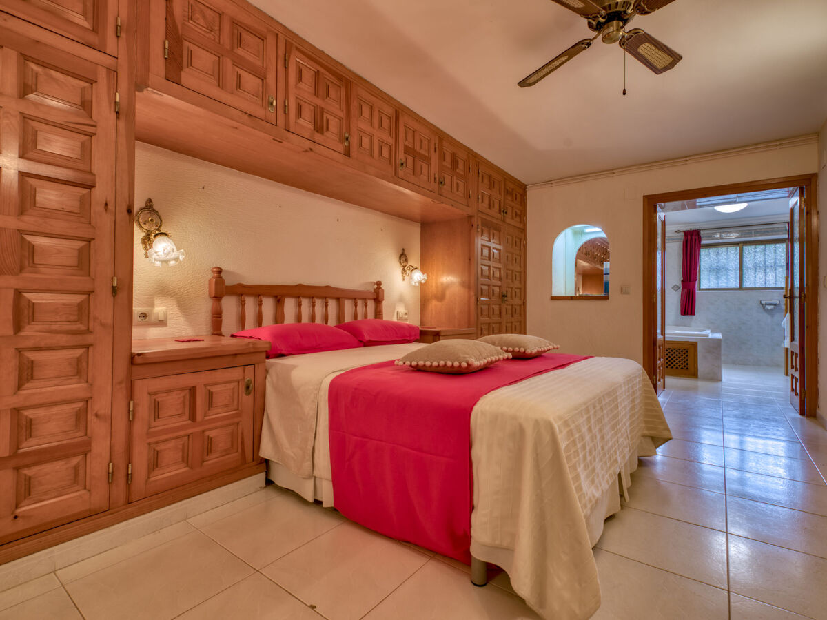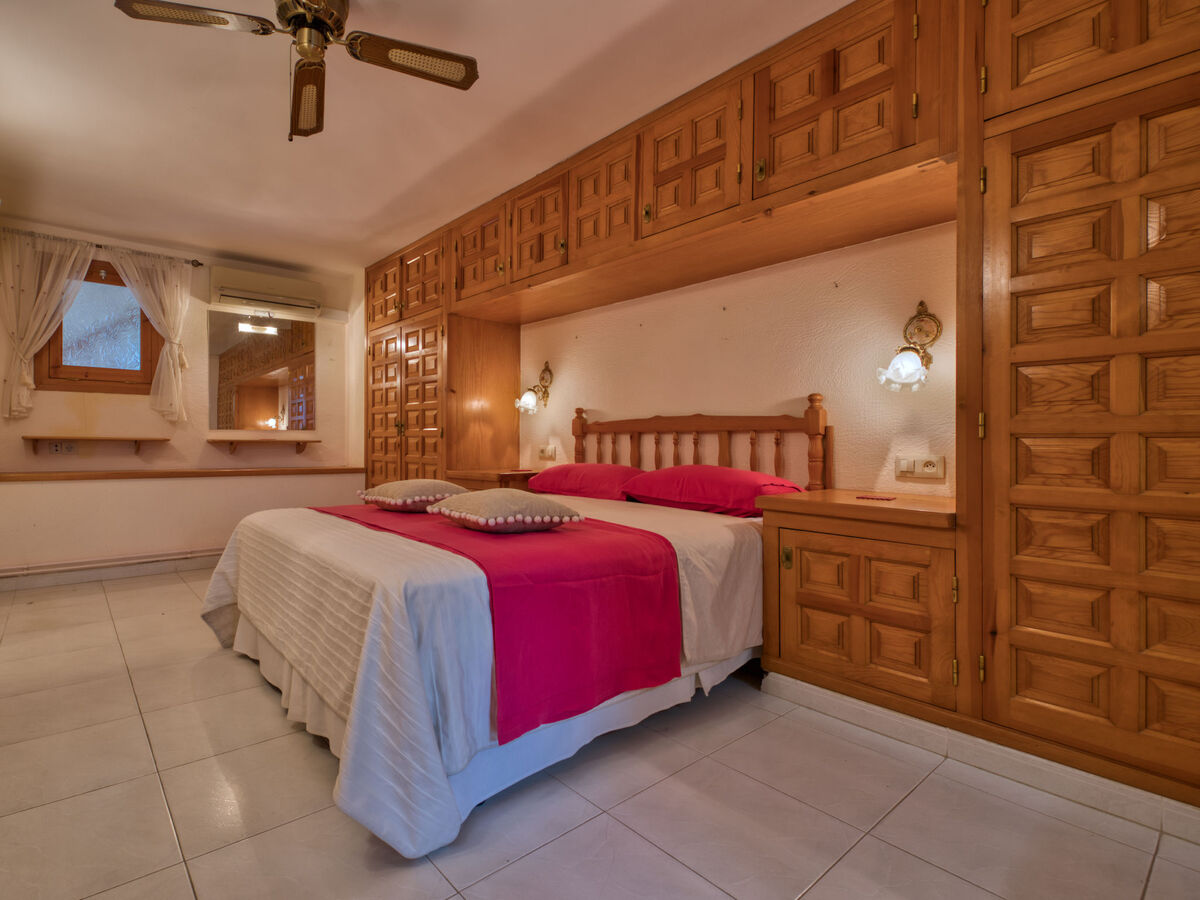 À l'étage inférieur: 1 chambre avec 1 grand-lit (150 cm, longueur 190 cm), air-conditionné et chauffage à air chaud.