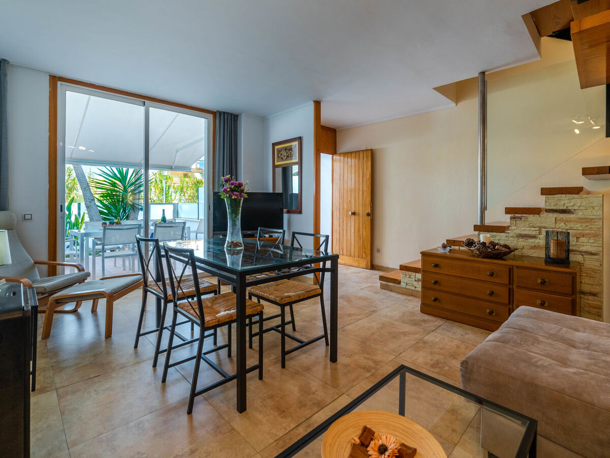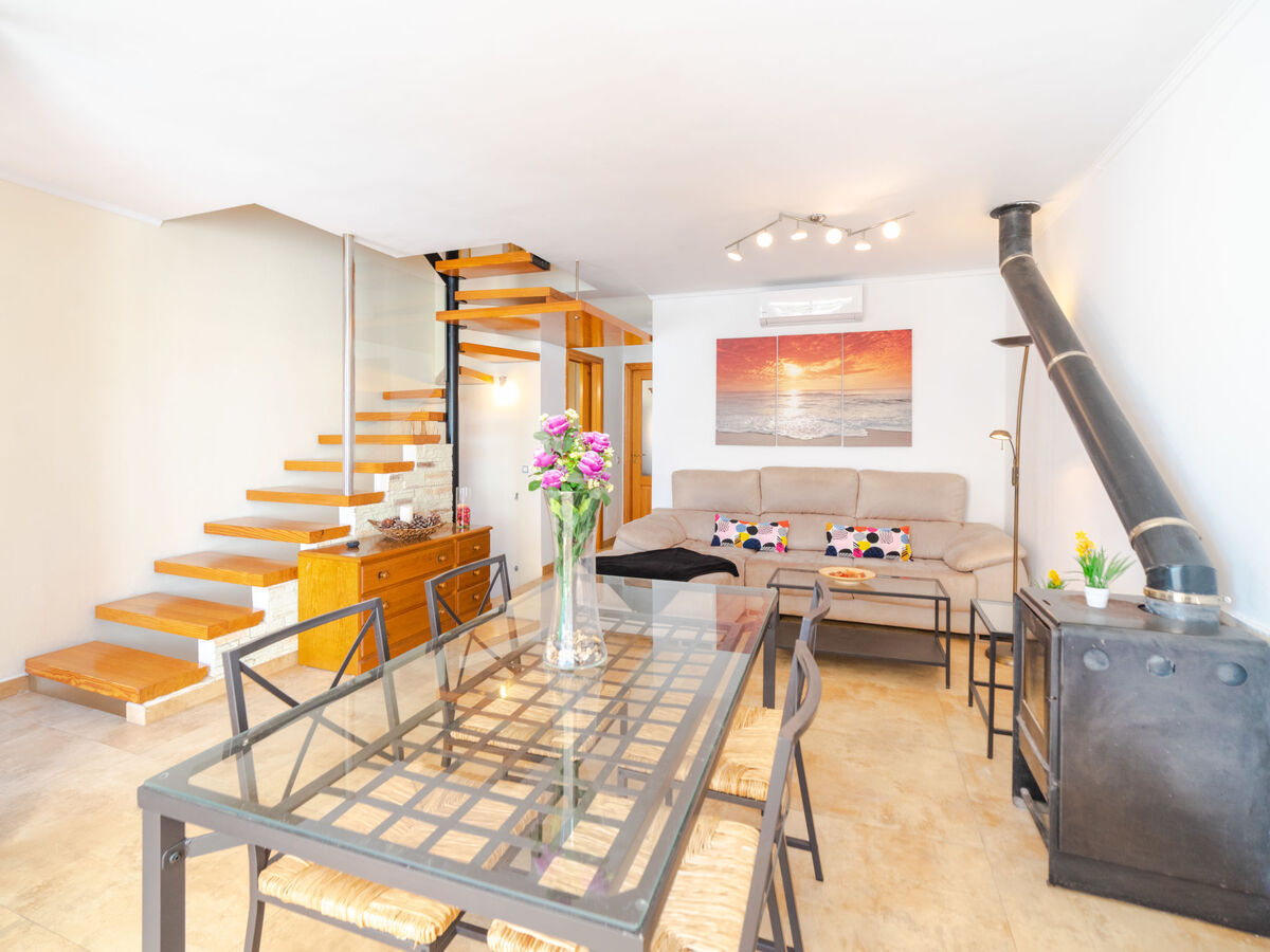 Aménagement très fonctionnel et confortable: séjour/salle à manger avec baie vitrée avec cheminée, table pour les repas, TV (satellite), Télévision numérique, écran plat, air-conditionné et chauffage à air chaud.