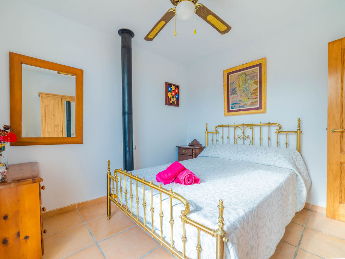 À l'étage supérieur: 1 grande chambre double avec baie vitrée avec 1 lit double (150 cm, longueur 200 cm), douche/WC et poêle à bois.
